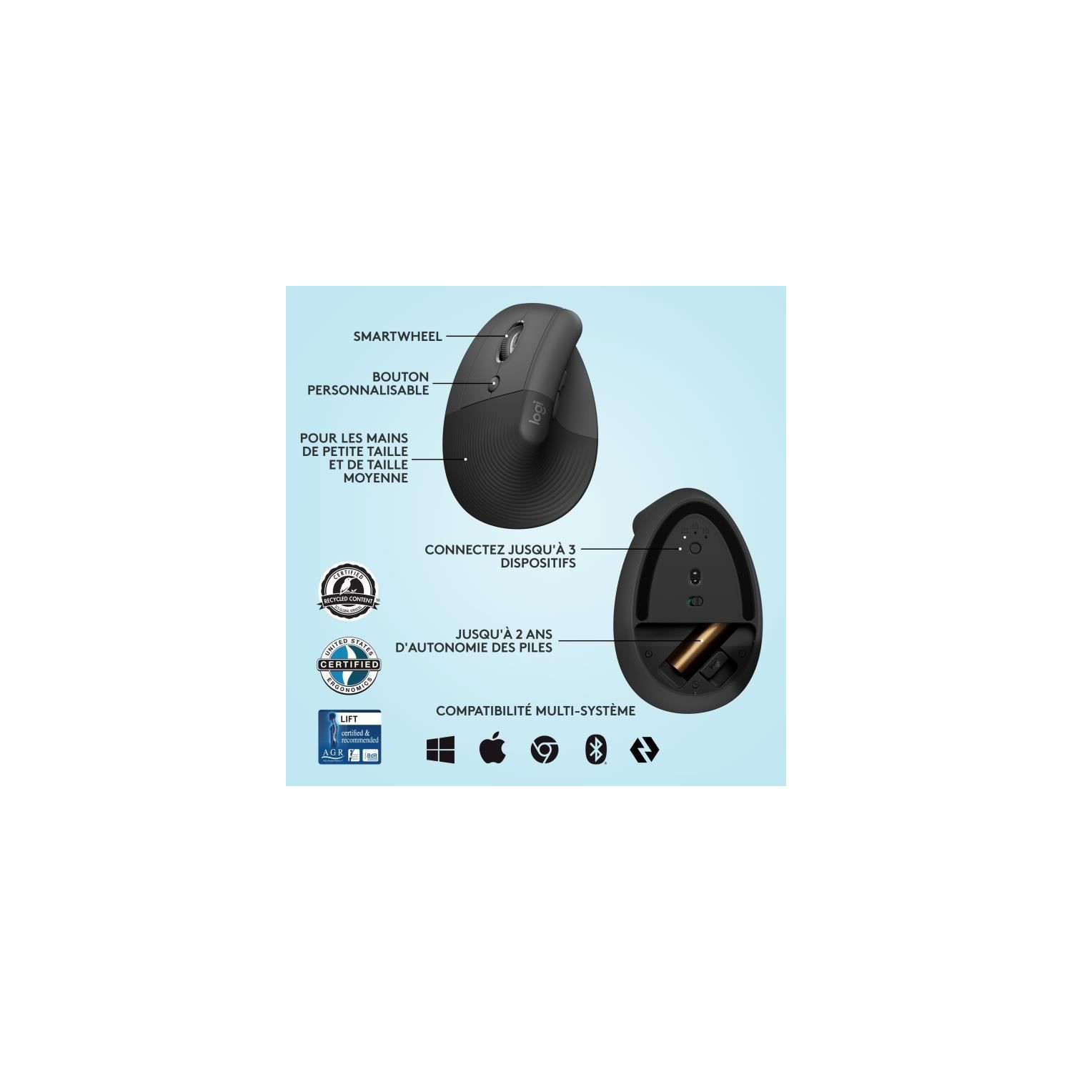 | Libellé | Souris sans fil Logitech Lift Left Vertical Ergonomic ergonomique sans fil Bluetooth |
