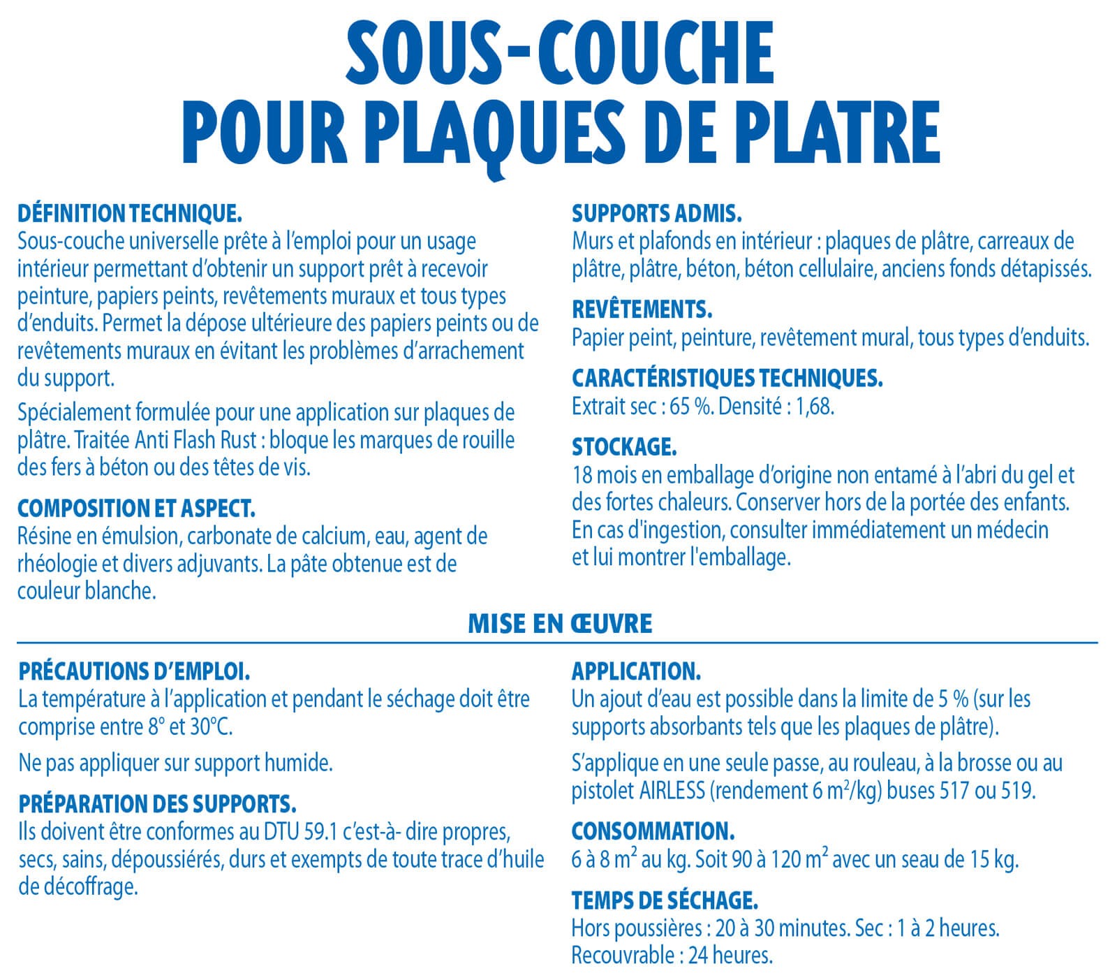| Plus produit | Spécialement formulé pour une application sur plaque de plâtre |