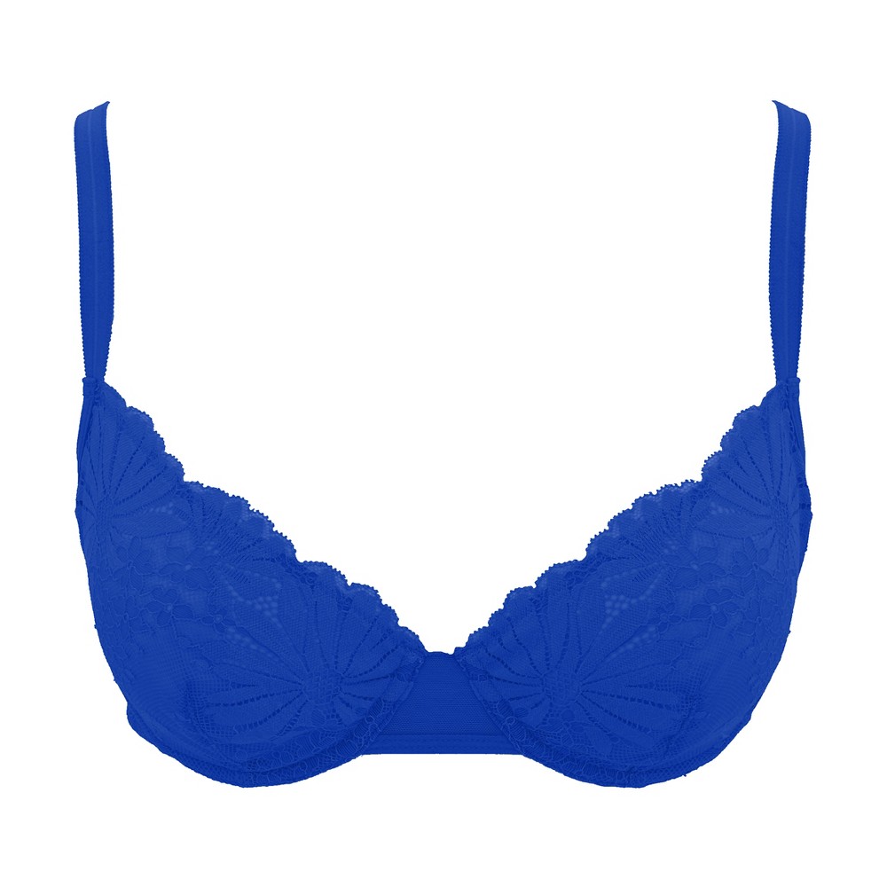 Soutien-gorge avec armature en dentelle bleu. Composition : 87% polyamide 13% élasthanne. Existe du 90B au 105D.