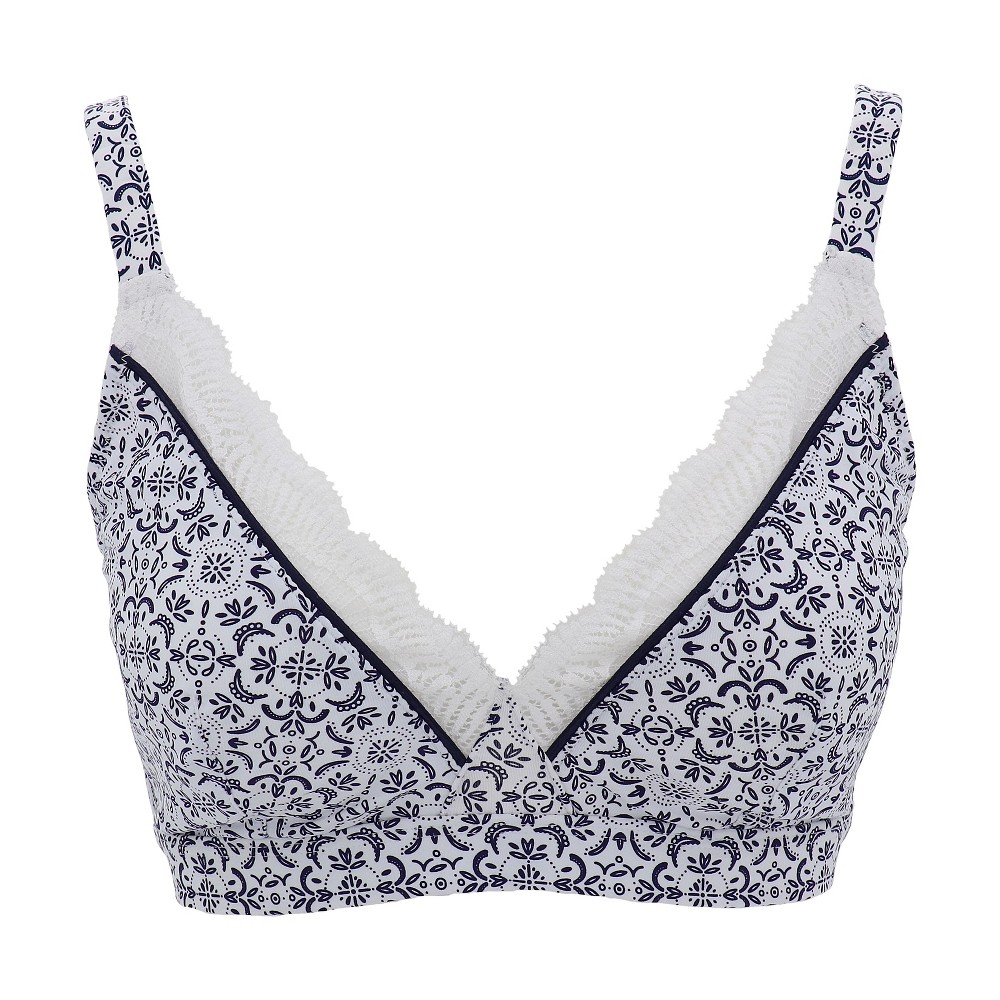 Soutien-gorge sans armature en microfibre et dentelle Femme Blanc et bleu TISSAIA