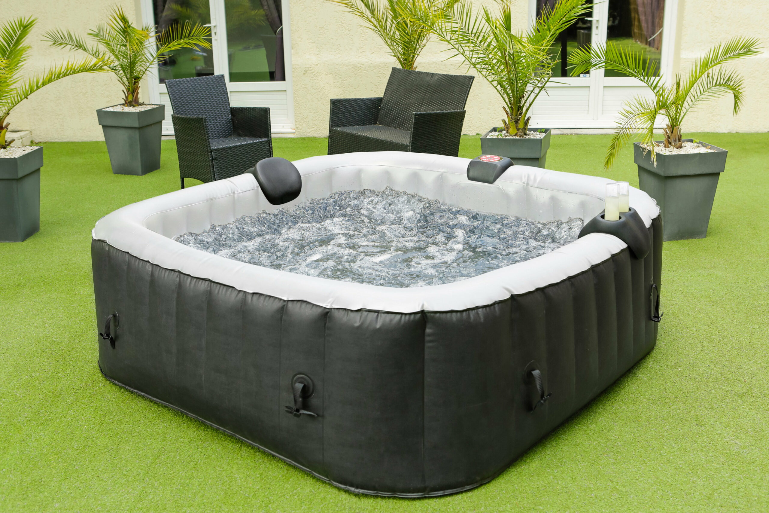 Spa gonflable 6 places carré - Ospazia - Dimensions : 185 x 185 cm - Filtre et bâche inclus