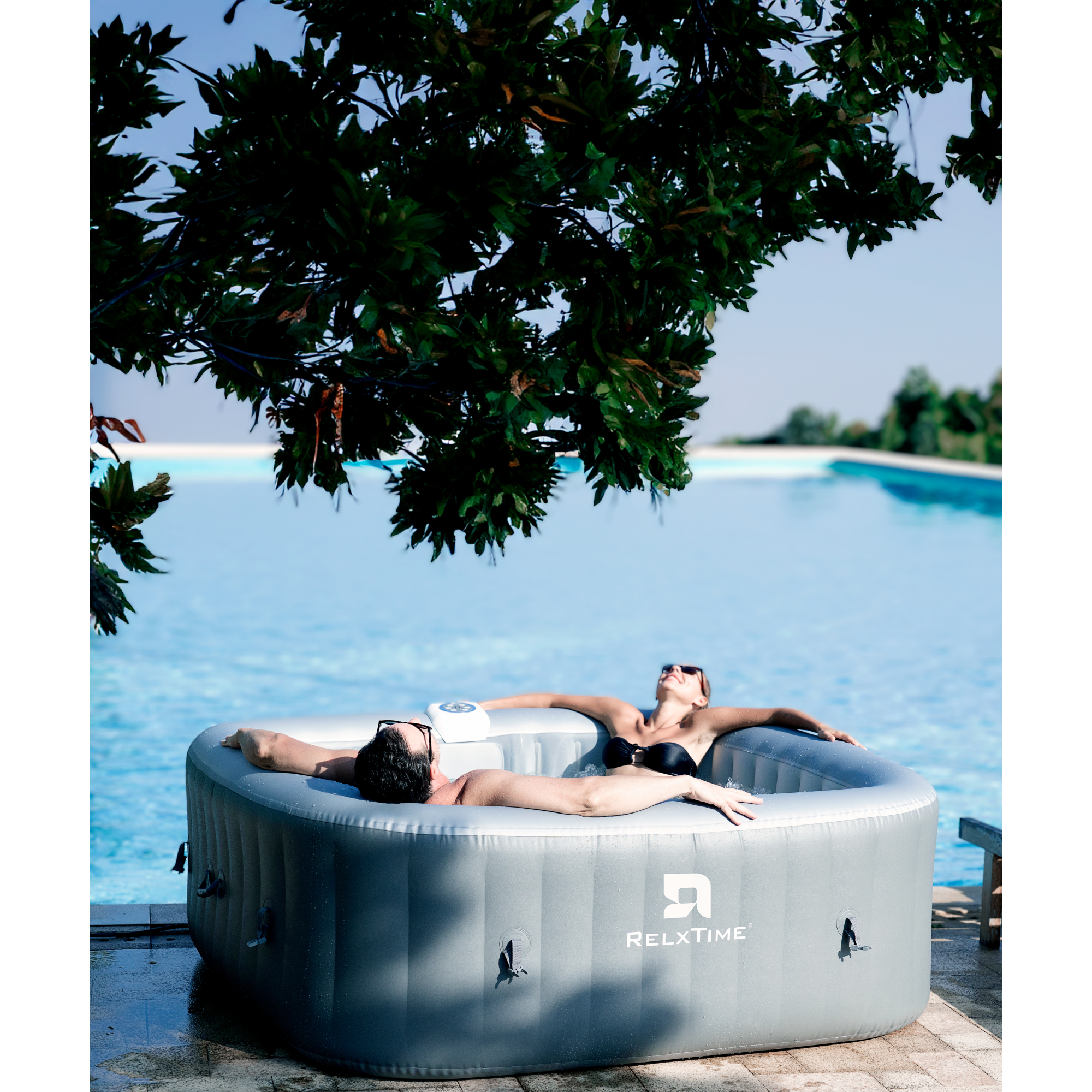 Spa gonflable 6 places carré - RELXTIME - 130 Jets - Gris - Filtre et bâche inclus