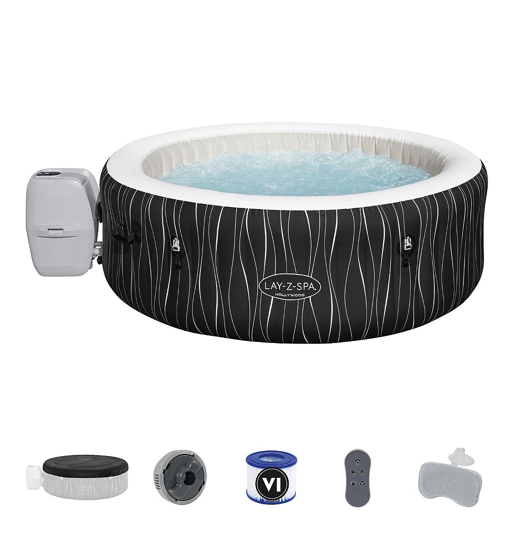 | Libellé | Spa gonflable Hollywood, 4 à 6 personnes, 196 x 66 cm, 140 Airjet, couverture isolante, 4 coussins, éclairage LED, filtration à cartouche et diffuse |