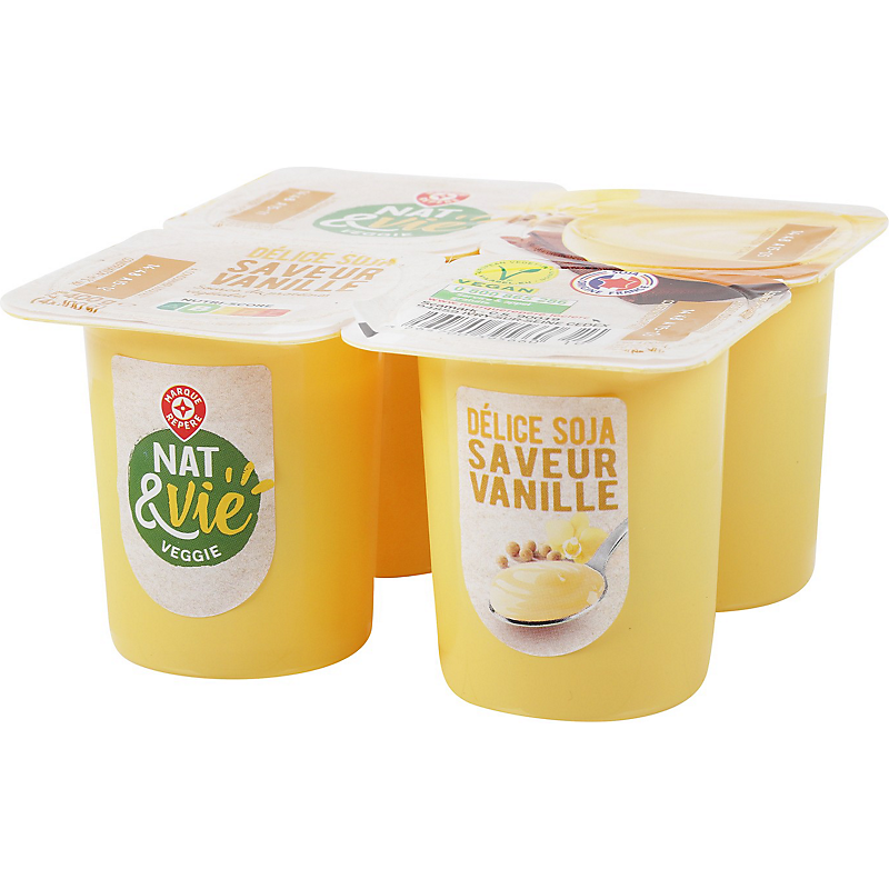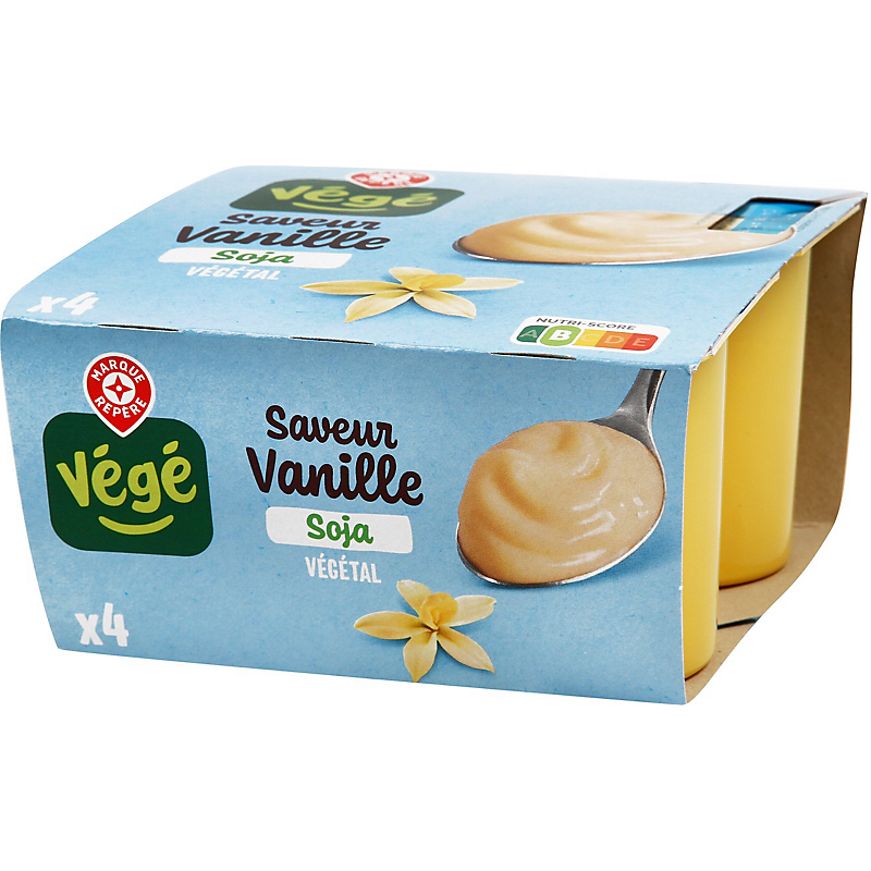 Ingrédients: Jus de soja 86 % (eau, graine de soja 6,5 %), sucre, amidons modifiés de tapioca, arôme, épaississant: carraghénanes, sel.