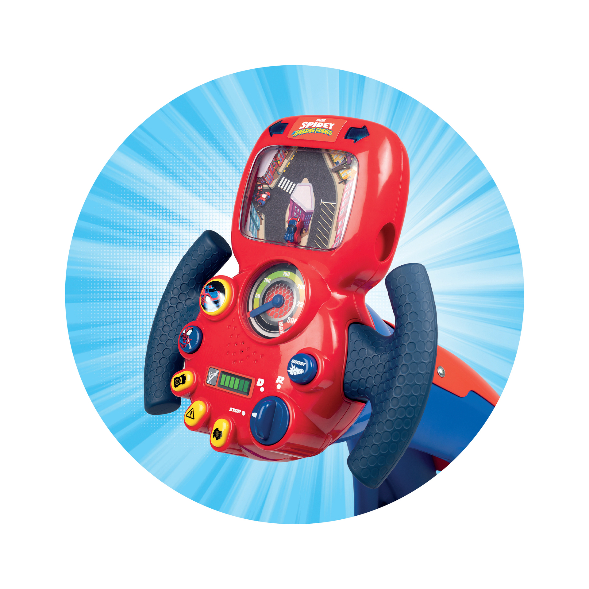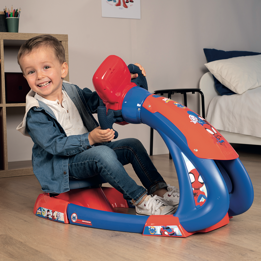 Grâce au simulateur de conduite Spidey V8 Driver, tu vas pouvoir conduire comme ton héros préféré : SPIDEY ! Tu n'auras qu'à t'asseoir pour découvrir les sensations de la course automobile ! Avec son assise très confortable et ses 3 positions de conduite, tu pourras passer des heures entières à jouer tout en étant à l'aise ! Son volant électronique avec circuit animé et écran rétro éclairé saura te satisfaire puisque tu seras directement plongé dans l'univers des courses poursuites, comme dans le dessin animé Spidey et ses amis extraordinaires! Pour encore plus de réalisme, près de 15 sons de voiture et de course, et le son de sa toile y sont intégrés. La fonction boost et la marche arrière donnent encore plus de possibilités de jeu ! Grâce au V8 Driver, tu pourras te mettre à la place de tes héros préférés et vivre de grandes sensations ! A partir de 3 ans. Made in France. 3 piles LR6 non incluses.