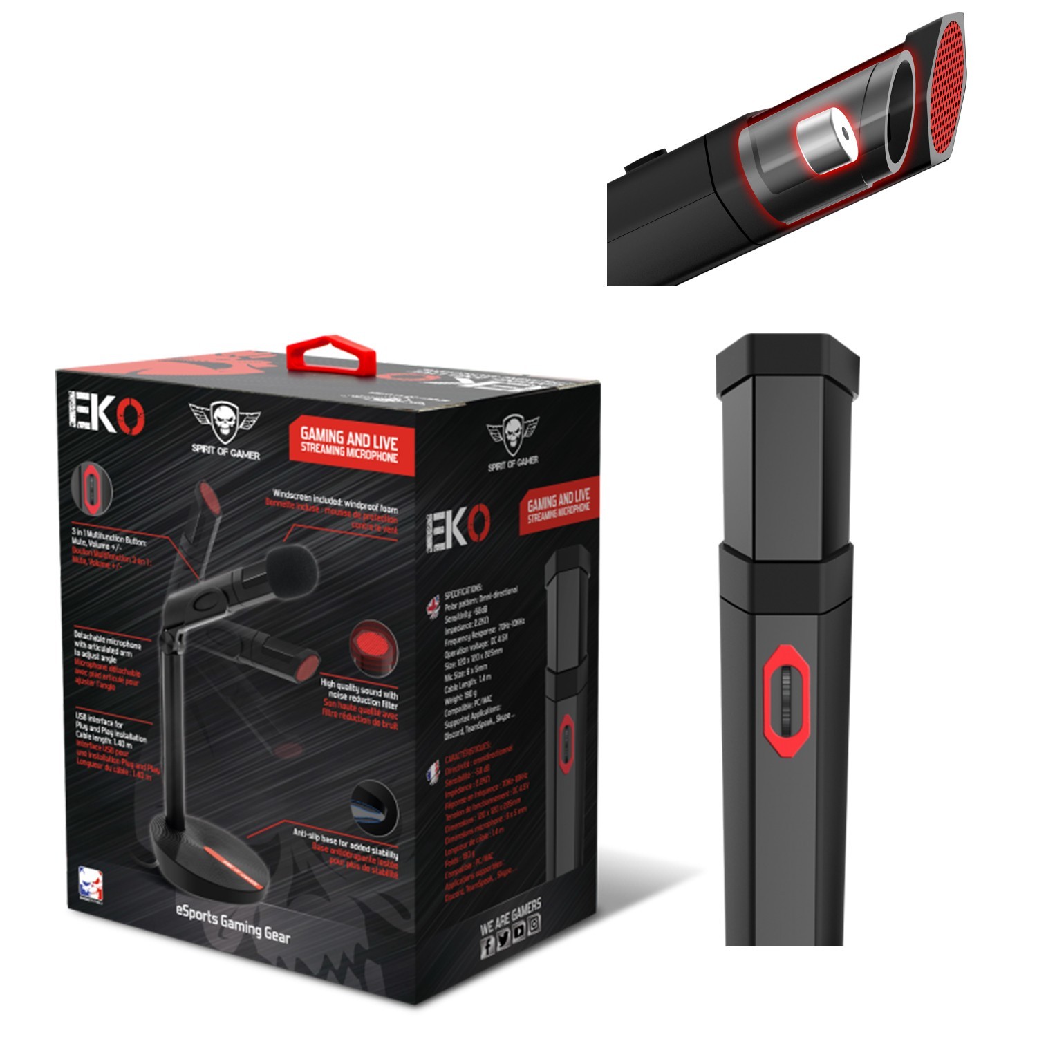 EKO vous offre un son haute qualité avec son filtre réduction de bruit, idéal pour le Streaming, l'enregistrement, ou des conversations (bouton multifonction 3 en 1 : Mute, Volume +/-).
