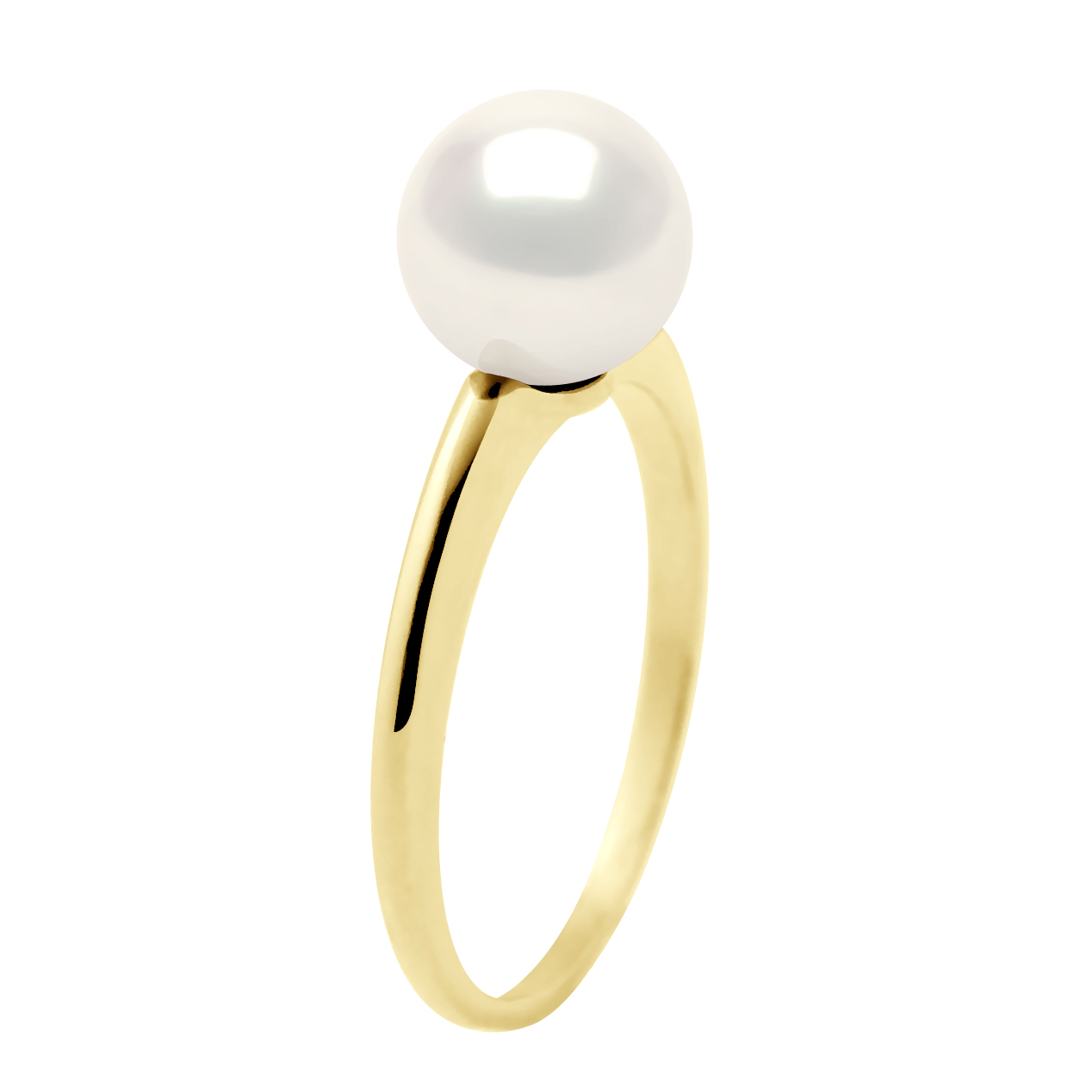 Bague Jonc Or Jaune 375 Millièmes orné d'une Véritable Perle de Culture d'Eau Douce RONDE 7-8 mm - Colori Blanc Naturel - DISPONIBLE TAILLE PAIRES du 48 au 62 - Livrée avec Certificat d'Authenticité et de Garantie - Frabriqué en FRANCE