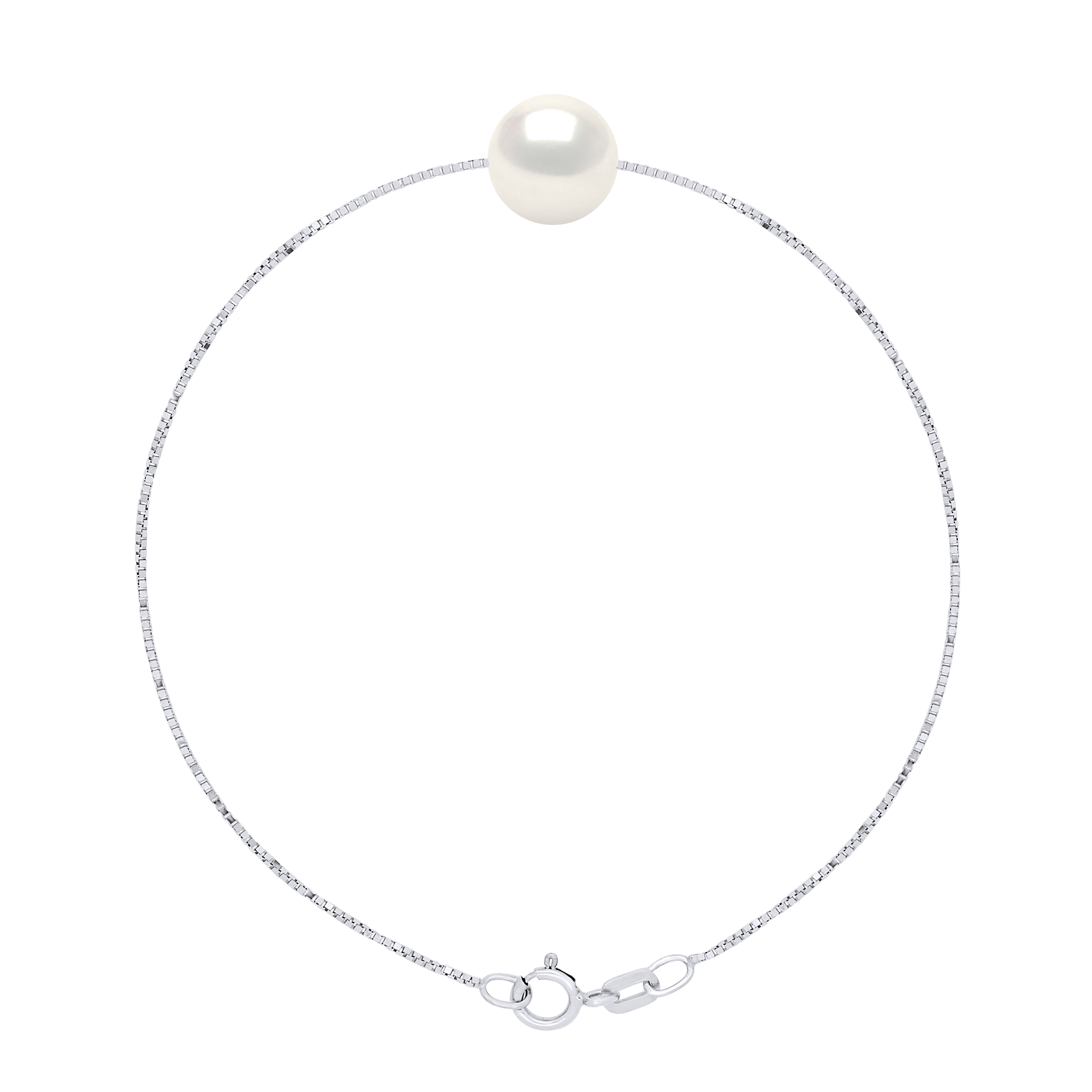 Bracelet Véritable Perle de Culture d'Eau Douce TRAVERSANTE Ronde 9 - 10 mm - COULEUR Blanc Naturel - Maille Vénitienne en Argent Rhodié 925 Millièmes - Longueur 18 cm - Livré avec Certificat d'Authenticité et de Garantie internationale -