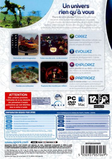 De la forme de vie la plus primitive jusqu'au plus haut niveau d'existence intergalactique, contrôlez la vie elle-même dans Spore sur PC. Commencez par un organisme unicellulaire et évoluez jusqu'à un être complet, intégrez des groupes, des clans, même des civilisations et adaptez-vous aux espèces préexistantes. Plus la planète est habitée, plus la lutte pour la survie sera dure.