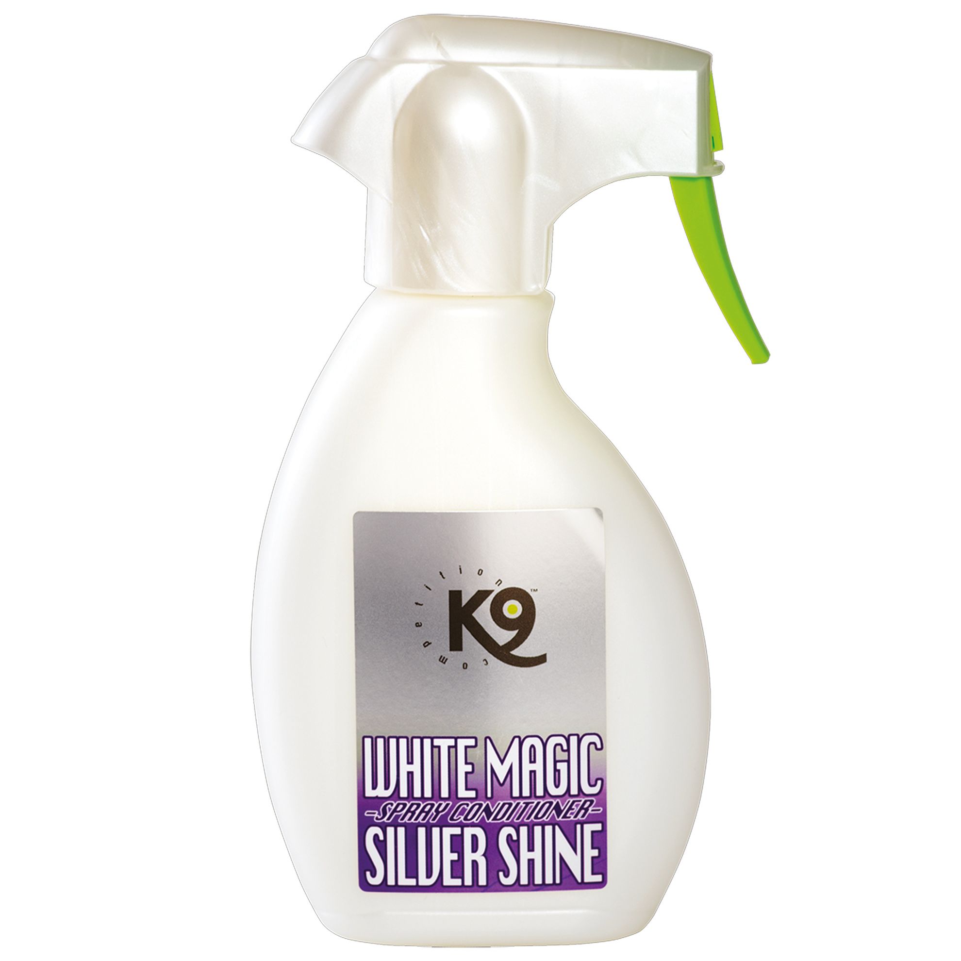 Spray white MAGIC K9 Competition pour chien.Pour redonner tout son éclat au pelage de votre chien (poils blancs ou gris.)Spray de 250 ml. Spray white MAGIC Silver Shine K9 Competition pour chien. Spécialement formulé à la kératine, ce spray conditionneur possède un pouvoir démêlant et anti statique combiné à un révélateur de couleur, Pour chiens aux poils blancs ou gris. Comment redonner un coup d'éclat au pelage clair de votre animal, en un geste ? Grâce à ce spray, le poil de votre animal retrouvera son blanc ou son gris originel grâce aux actifs neutralisant les reflets non désirés. Le poil sera éclatant, brillant, hydraté. Utilisé régulièrement, ce spray permettra de prévenir des noeuds et de la casse du poil. Grâce à son action, il repousse la saleté, permettant ainsi à votre chien de conserver un poil beau et brillant, durablement. Caractéristiques et avantages : Formulé à la kératine pour renforcé le poil, Prévient de la formation des noeuds, Non huileux, Sans rinçage, Spray de 250 ml. Conseils d'utilisation : Vaporiser sur poils secs ou humides pour aider et protéger les poils lors du brossage. Vaporiser directement sur les noeuds et masser pour démêler. Attention : Dangereux, respecter les précautions d'emploi. Ne pas utiliser sur les chats.