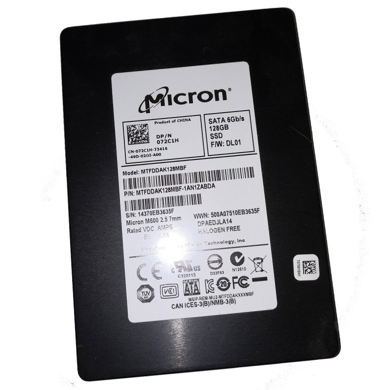 SSD 128Go Micron MTFDDAK128MBF-1AN1ZABDA Dell 072C1H 72C1H DL01 SATA III 6Gbps