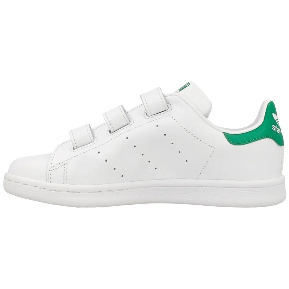 Conçue à l'image de l'un des meilleurs tennismen au monde, la Stan Smith est une référence lifestyle dans le monde entier. Cette chaussure est une version kids d'un grand classique adidas. Sa tige en cuir souple est doublée dans une matière douce pour plus de confort. Les fermetures par bandes la rendent facile à enfiler et à retirer. Fermetures auto-agrippantes. Tige en cuir pleine fleur. Semelle extérieure en caoutchouc adhérent. La semelle de propreté OrthoLite® assure confort et performance.