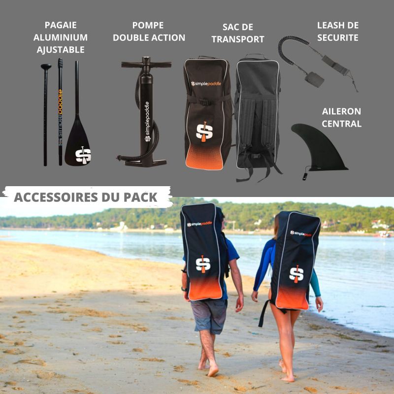 La construction en Dropstitch et le PVC apportent solidité et une grande résistance aux chocs. Il se gonfle en quelques minutes (4 à 7 minutes) avec une pompe manuelle et se transporte facilement avec les accessoires dans un sac.