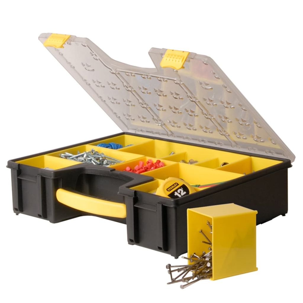 Cette boîte de rangement des outils professionnelle de Stanley avec 8 grands compartiments de rangement est idéale pour ranger de petits accessoires d'outils.