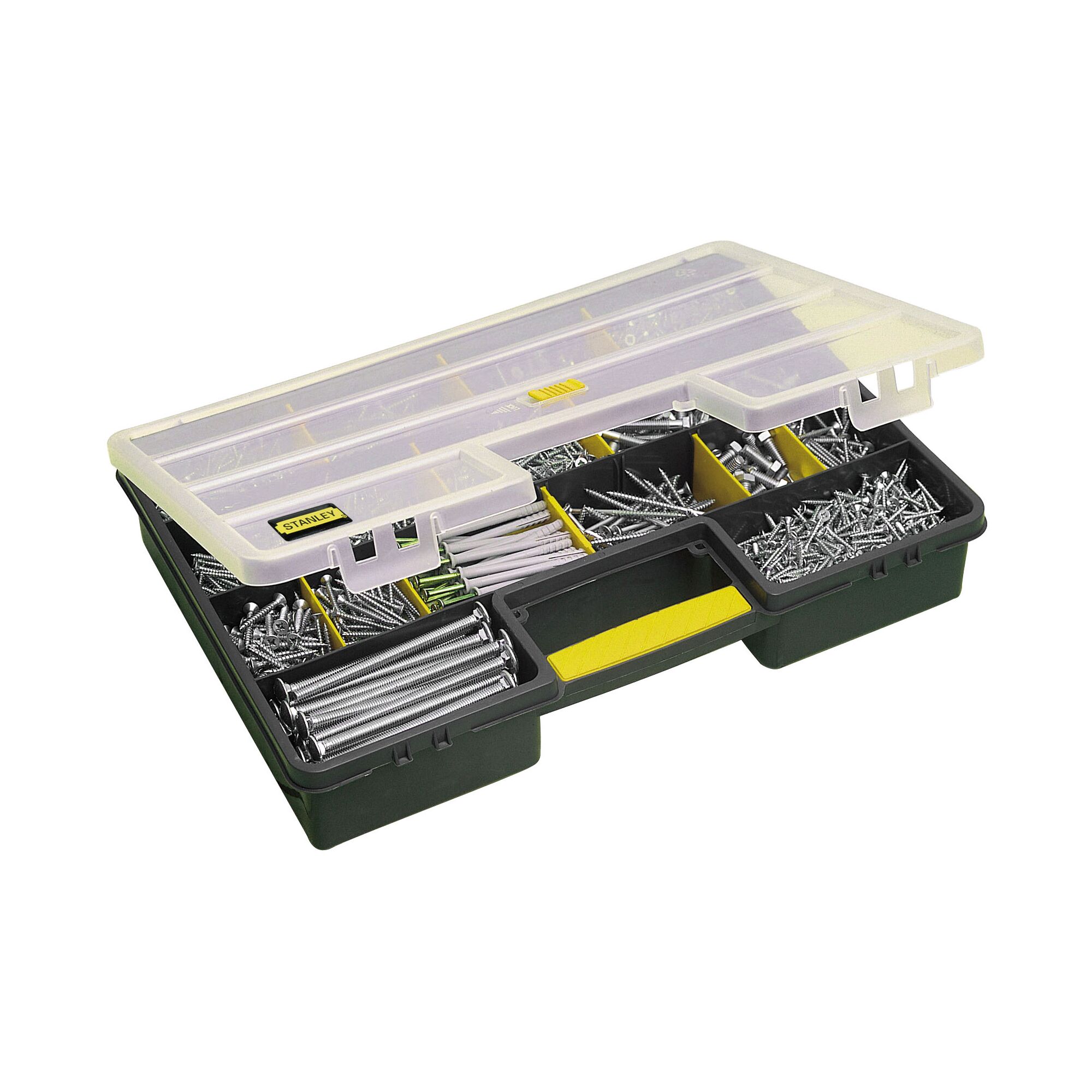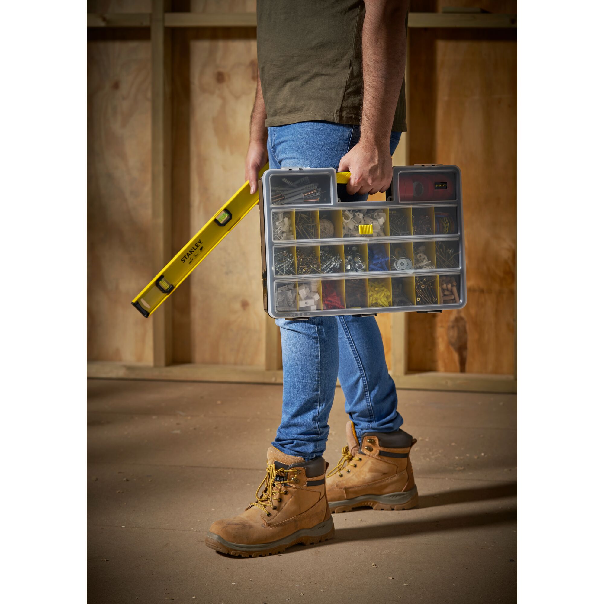 Cette boîte de rangement des outils classique 199 de Stanley avec 26 compartiments de rangement personnalisables est idéale pour ranger de petits accessoires d'outils.