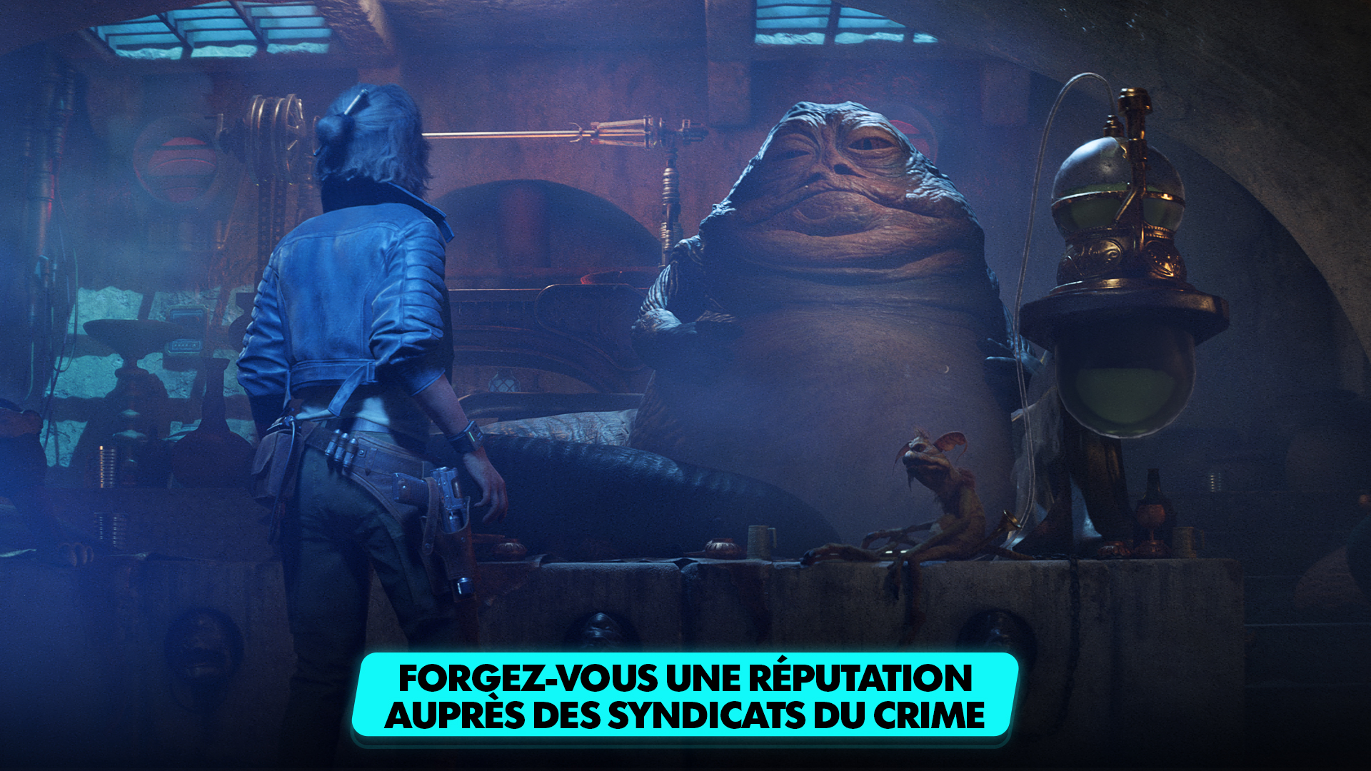 DÉCOUVREZ TOUTE UNE GALAXIE D'OPPORTUNITÉS Explorez des lieux mémorables, des villes débordant d'activité aux cantinas animées. Foncez dans d'immenses zones extérieures sur votre speeder. Chaque lieu regorge de nouvelles aventures, de défis uniques et de récompenses alléchantes, à condition de savoir prendre des risques. VIVEZ UNE TOUTE NOUVELLE HISTOIRE DE HORS-LA-LOI Menez l'existence sur le fil d'une véritable hors-la-loi. Gardez la maîtrise en toute situation, avec Nix à vos côtés : battez-vous avec votre blaster, venez à bout de vos ennemis grâce à votre furtivité et vos gadgets, ou distrayez vos ennemis au bon moment pour prendre l'avantage. PRENEZ PART À DES MISSIONS AUX ENJEUX ÉLEVÉS Acceptez des missions aussi risquées que lucratives auprès des syndicats criminels. Volez des marchandises précieuses, infiltrez-vous dans des lieux secrets et dupez vos adversaires en vous frottant aux pires voyous de la galaxie. Chacune de vos décisions affectera votre réputation, en bien ou en mal.