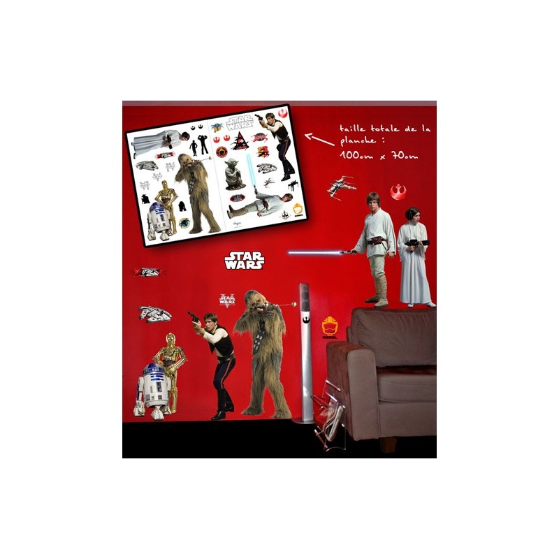 - Dimension totale d'une planche de stickers Star Wars : 70 cm x 100 cm.