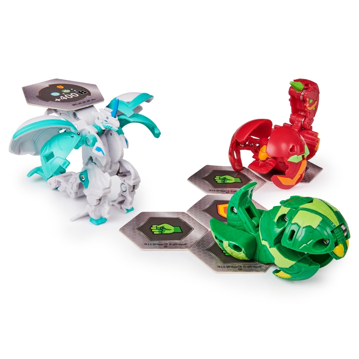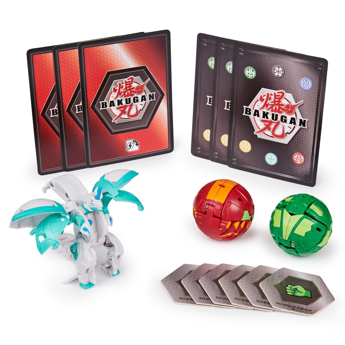 Contenu : 2 Bakugan classiques + 1 Bakugan Ultra, 6 cartes hexagonales BakuCore, 3 cartes Personnage, 3 cartes Maîtrise.