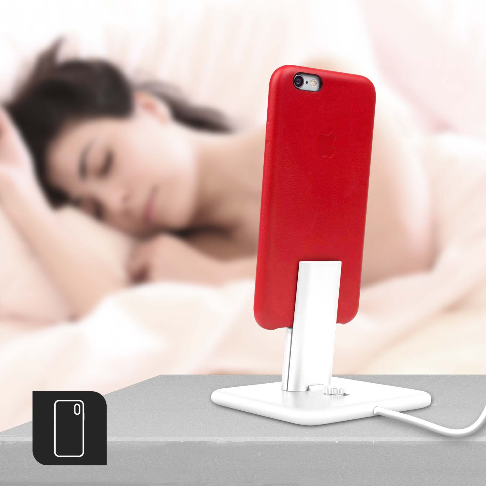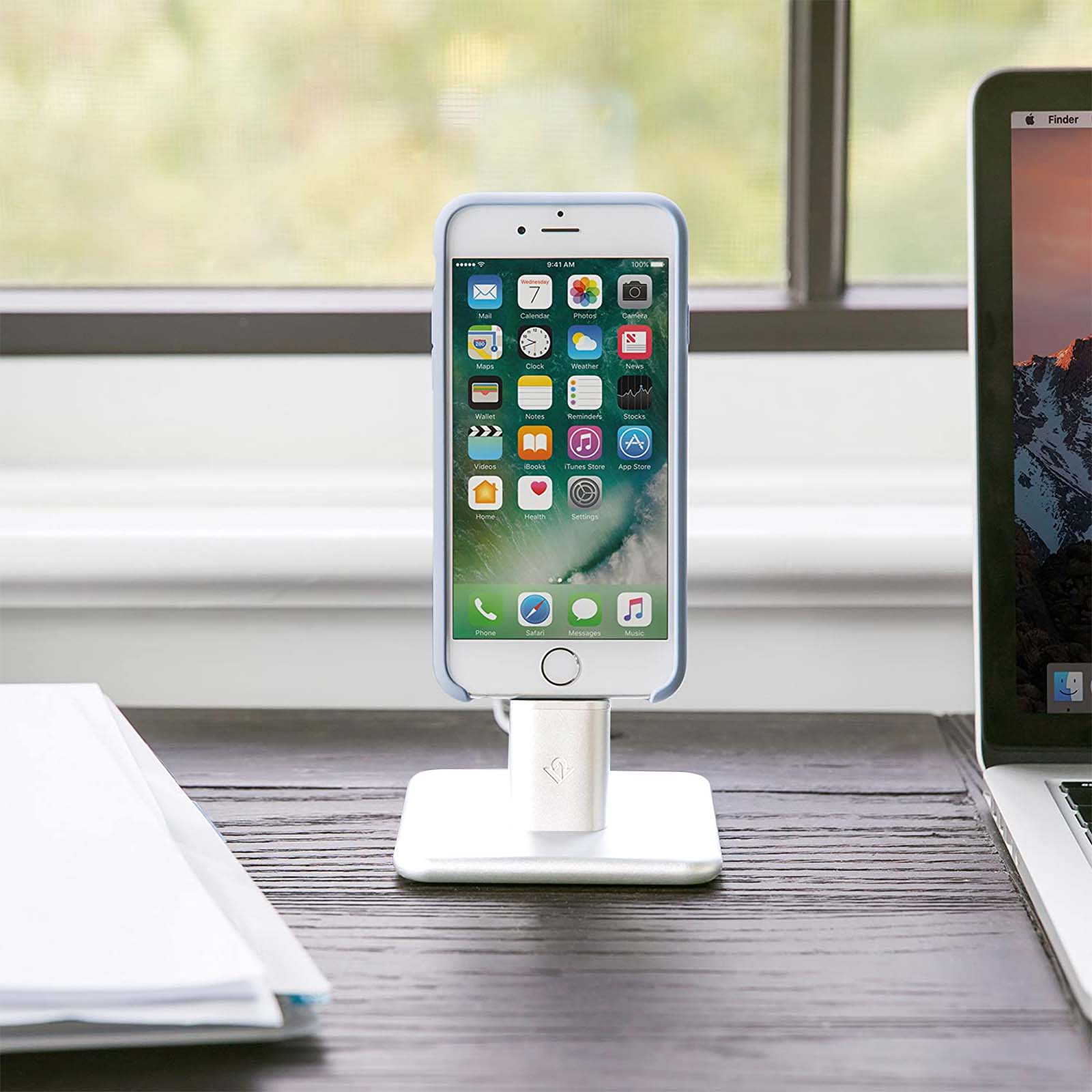Station d'accueil HiRise Deluxe 2 by Twelve South. Permet la recharge de tous vos appareils Apple. Laisse l'écran de votre appareil visible. Charge rapide et sécurisée. Design élégant et premium. Compatible avec les coques. Dim 9,5 x 8 x 9 cm / 230g.