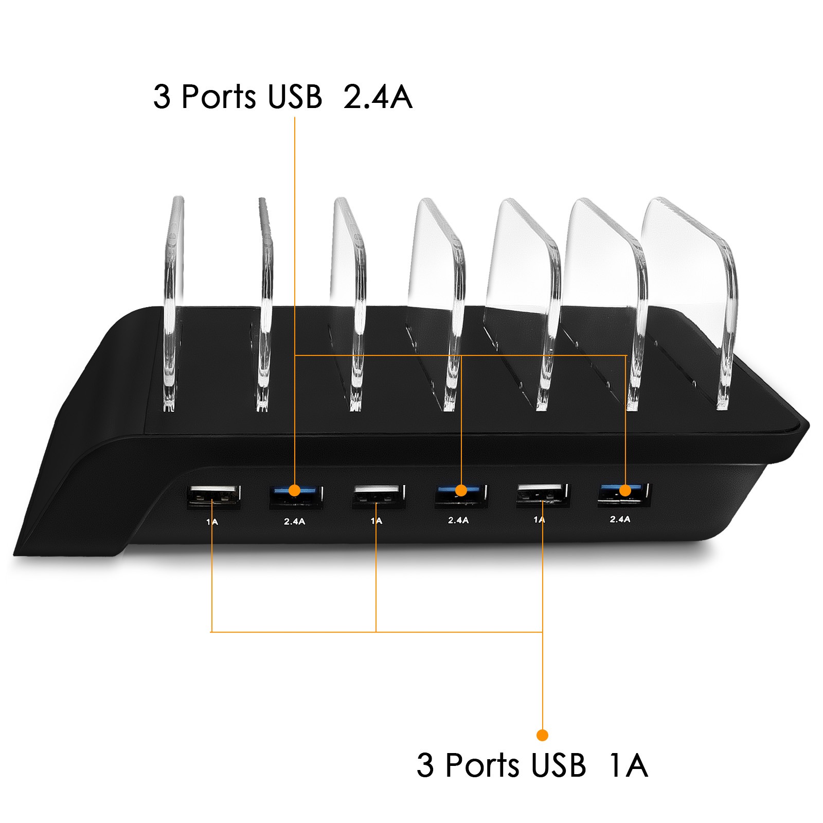 Station de charge Multi-appareils Base de charge 10.2 A 6 Ports USB 7x Supports