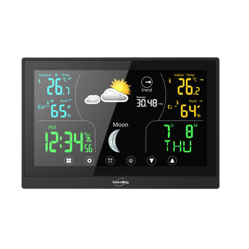 Multifonction et au design high tech, cette station météo électronique ultraslim par INOVALLEY, marque française leader en mesure environnementale, vous délivrera de façon très lisible des informations fiables sur les conditions climatiques environnantes