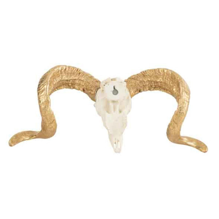 Statuette Déco "Crâne Mouton" 32cm Blanc & Or