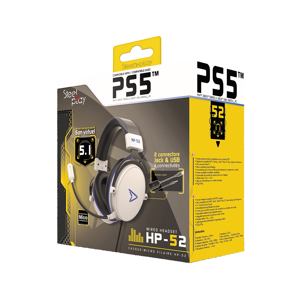 STEELPLAY - Casque filaire son 5.1 HP-52 - blanc (PS5 / PS4 / XBOX SERIES / XONE / SWITCH / PC) (PS5)
