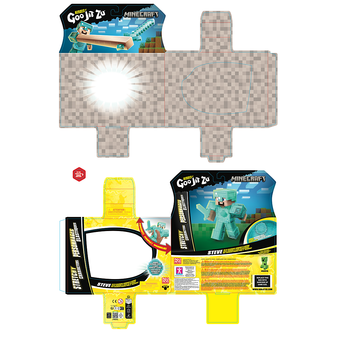 Découvre ton personnage préféré, issu de ton jeu vidéo préféré Minecraft, Steeve en version originale Goo Jit Zu à la texture surprenante ! Extensible jusqu'à 3x sa taille. Figurine 11cm.