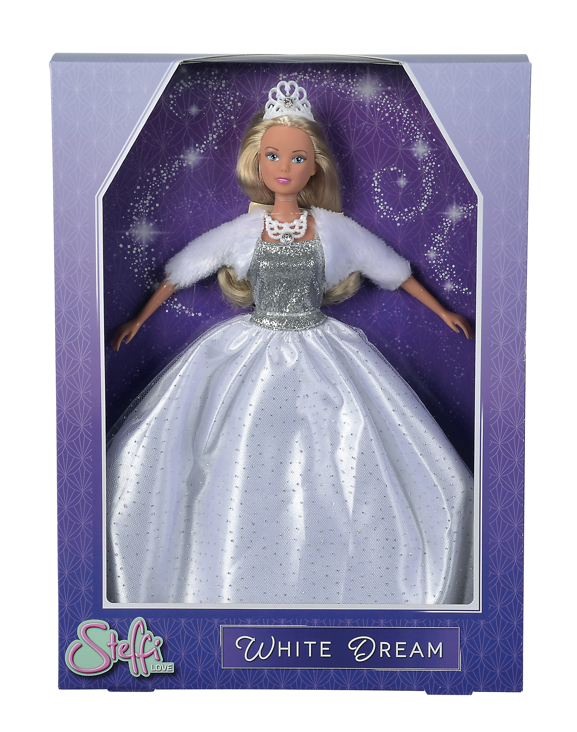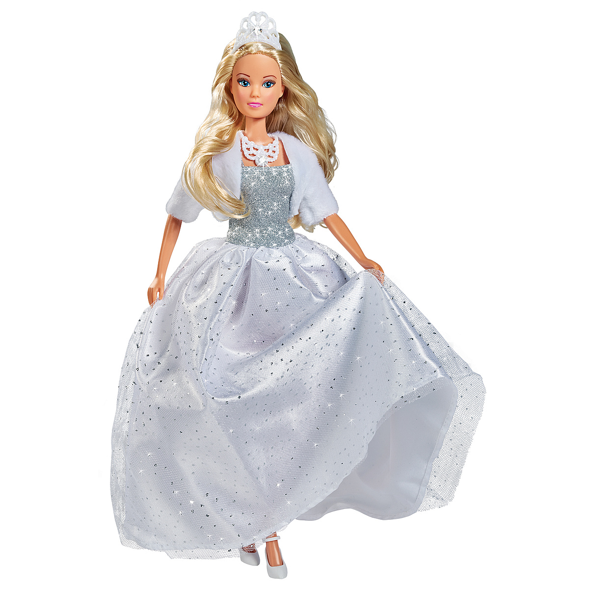 Plus produit Poupée mannequin Steffi dans une robe blanche glamour, avec une tiare et un collier.