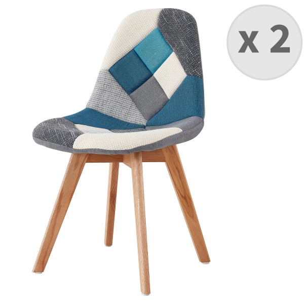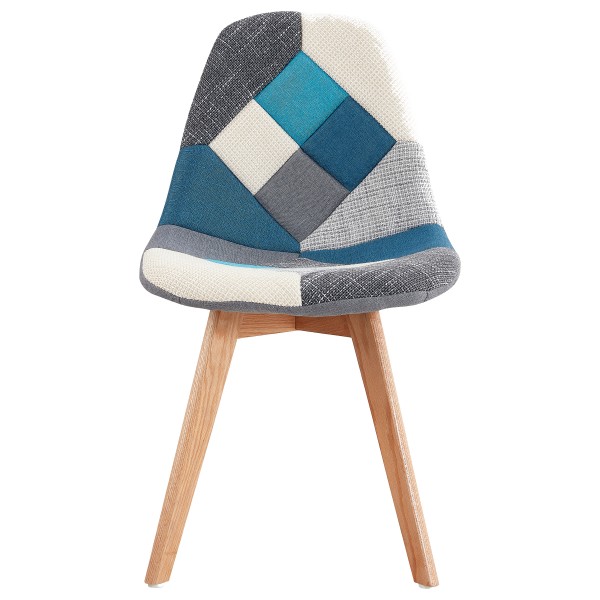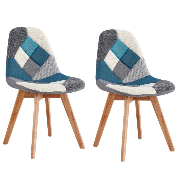 | Libellé | STELLA - Chaise scandinave tissu patchwork bleu pieds hêtre (x2) |