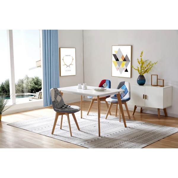 Le bois massif pour les pieds et le tissu polyester patchwork rouge pour l'assise cette chaise répond parfaitement aux codes du scandinave pour la beauté de nos intérieurs