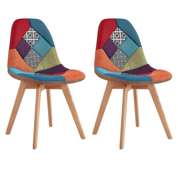 | Libellé | STELLA - Chaise scandinave tissu patchwork rouge pieds hêtre (x2) |