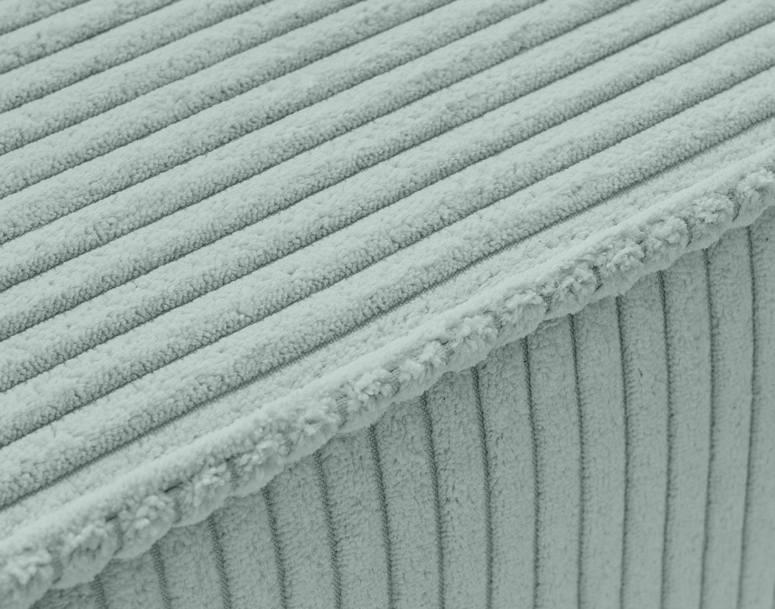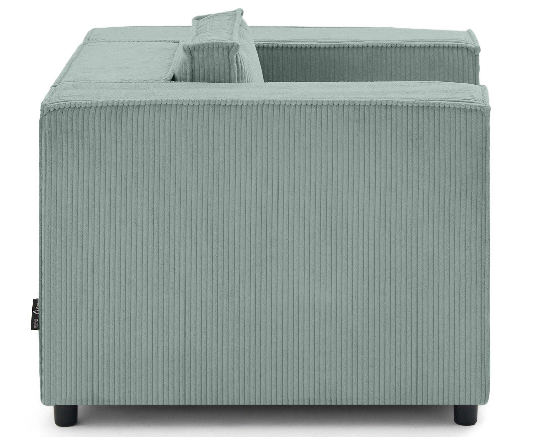 - Détail des matières : Assise et dossier : Mousse polyuréthane 30kg/m3 – Ressorts ondulés – Structure en bois massif et panneaux de particules – Revêtement en velours côtelé 100% polyester – Pieds en plastique