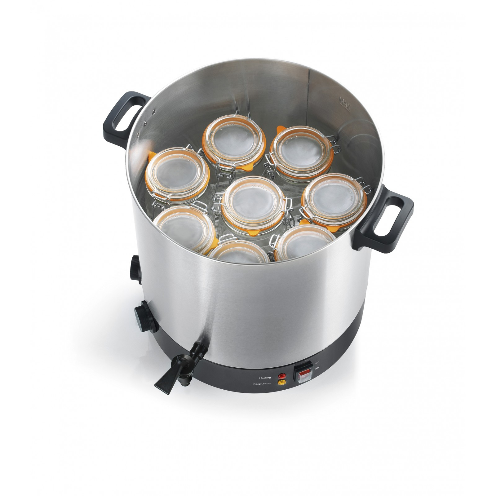 Stérilisateur de bocaux électrique avec cuve inox robinet et minuteur 31l 2100w - kcpst31ix - kitchen ch