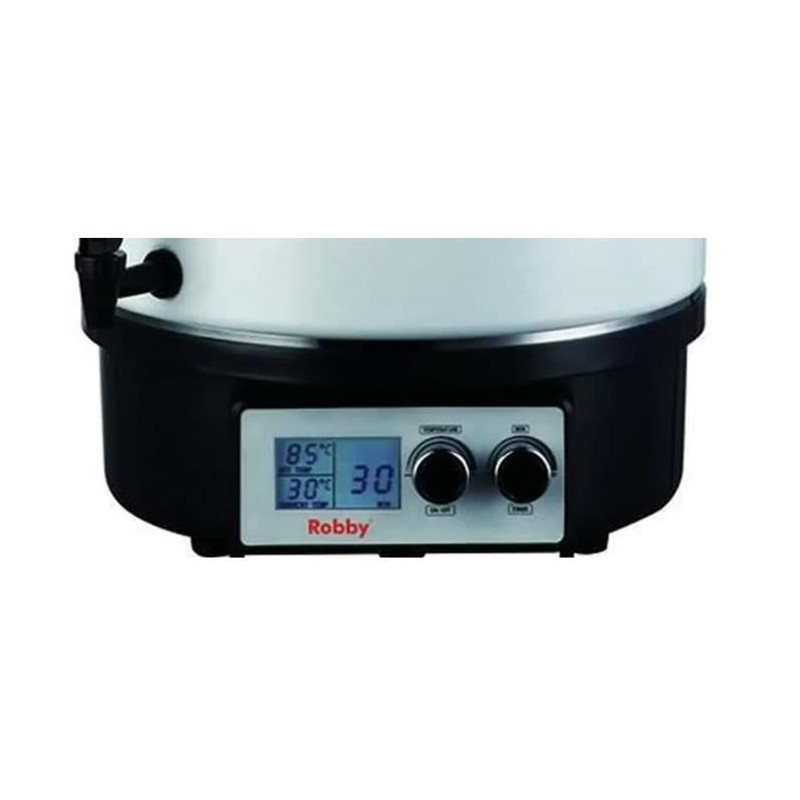 steri pro lcd - stérilisateur de bocaux électrique avec écran lcd robinet et minuteur 27l 1800w - Le stérilisateur électrique STERI PRO LCD de ROBBY vous permettra de préparer des soupes et du vin chaud en grand volume, mais également des pot-au-feux et stériliser tous vos bocaux.