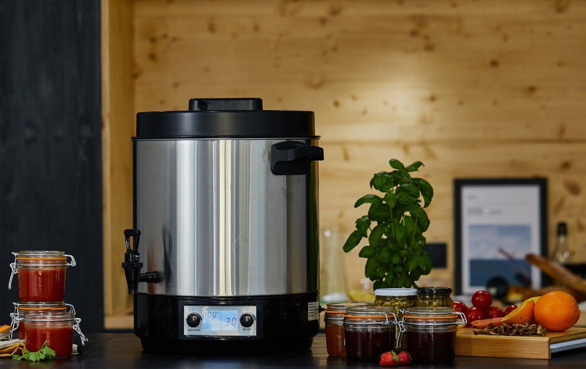 La grande capacité de remplissage vous laisse de la place pour préparer jusqu'à 8 bocaux d'1 L de 85 mm de diamètre, ou bien 16 bocaux de 0,5 L.