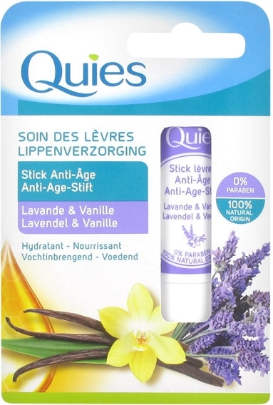 Quies Soin des Lèvres est un stick lèvres à la formule innovante enrichie en huiles végétales 100% d'origine naturelle associant : - du beurre de karité qui hydrate et nourrit intensément pour une sensation de confort immédiat, - de l'huile essentielle d'écorce de pamplemousse qui stimule la micro-circulation pour un effet tonifiant, - de la vitamine A et E, des antioxydants qui permettent de lutter contre les radicaux libres et le vieillissement prématuré des lèvres. , huile minérale, parfum, colorant, gluten, non testé sur les animaux.