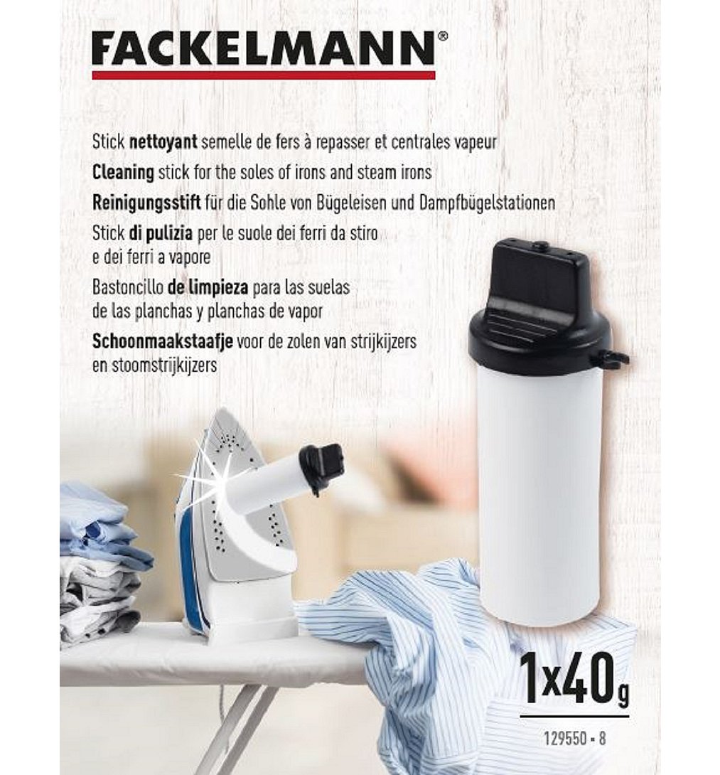 Découvrez le nouveau stick nettoyant Fackelmann pour fers à repasser et centrales vapeur. Cette nouveauté s'intègre parfaitement à notre nouvelle gamme, où nous avons pris en compte les enjeux environnementaux en optant pour une boîte en carton, illustrant ainsi notre engagement envers la durabilité. Spécialement conçu pour éliminer les salissures, traces de calcaires et dépôts de fibres textiles qui peuvent s’accumuler sur la semelle du fer, ce stick est une solution efficace pour nettoyer sans rayer. En nettoyant régulièrement la semelle de votre fer avec ce stick, vous conserverez une meilleure glisse de votre appareil sur le linge.