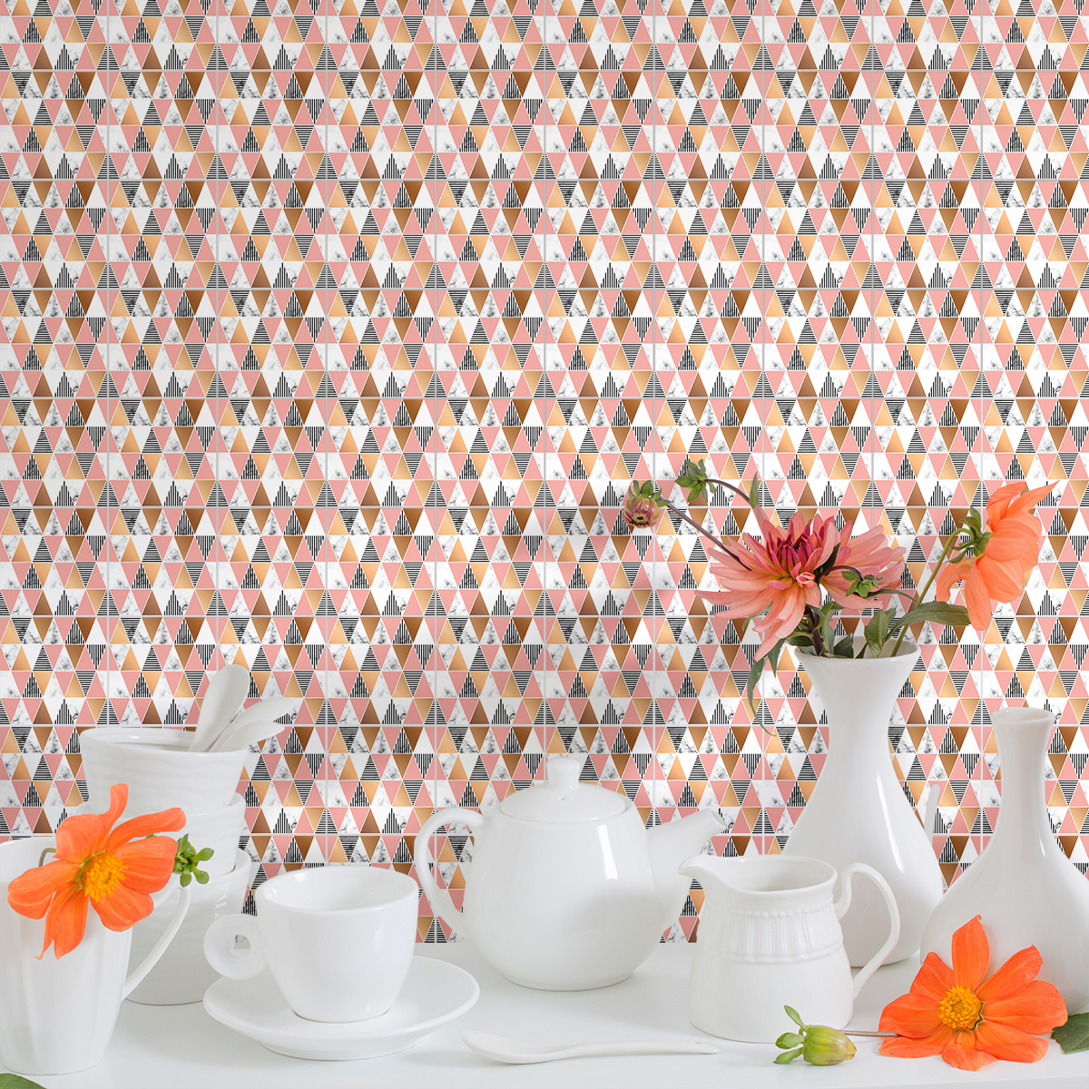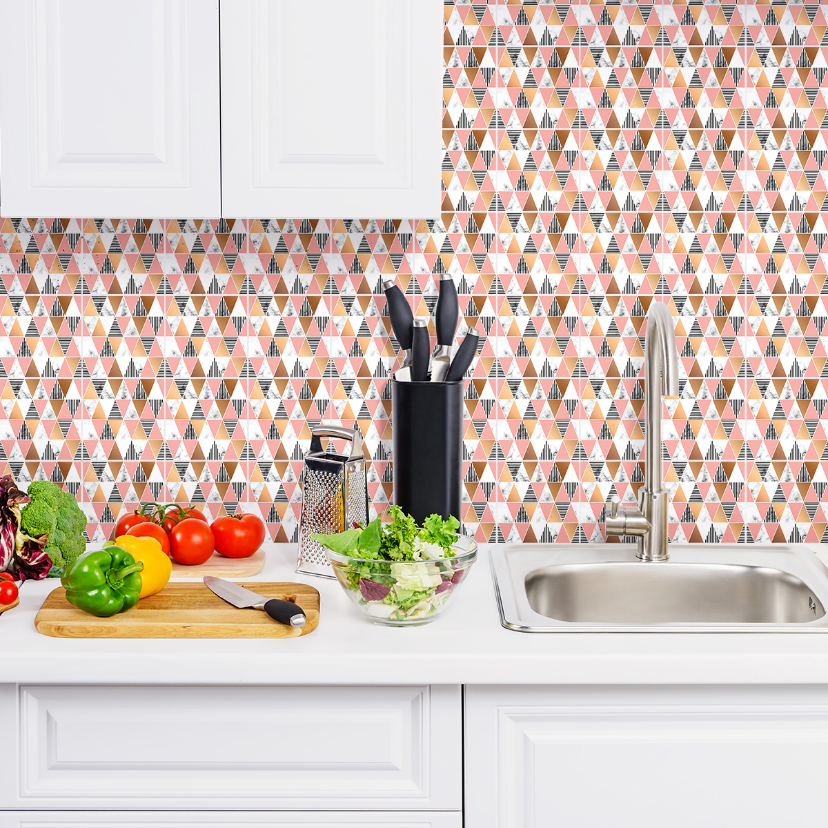 Sticker Mural Carrelage Cuisine Salle de Bain - 9 STICKERS CARREAUX DE CIMENT EFFET MABRÉ GÉOMÉTRIQUE CHI
