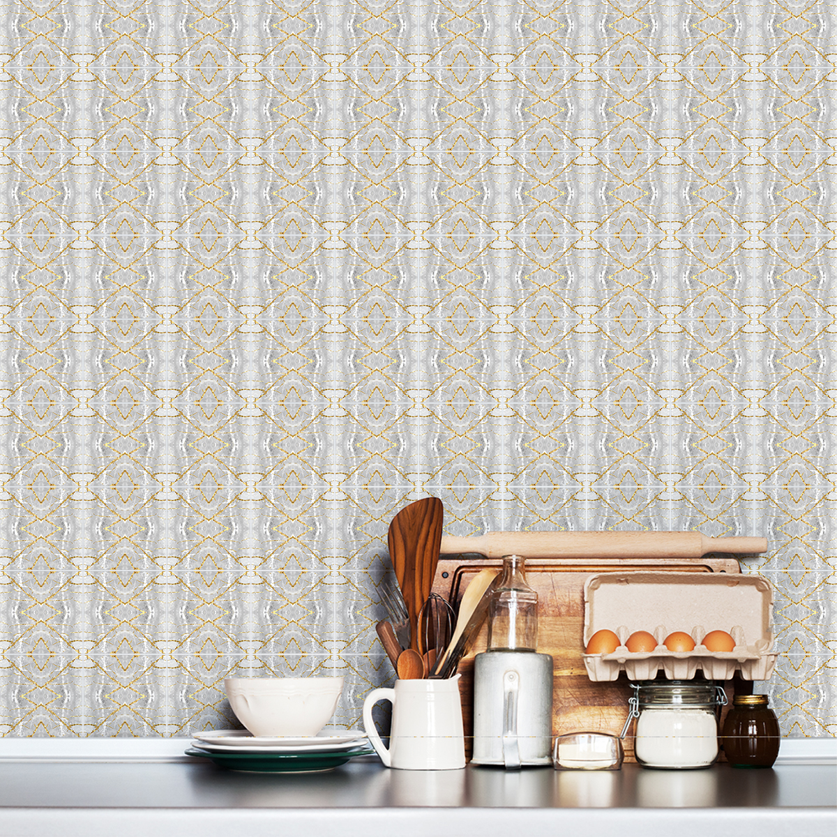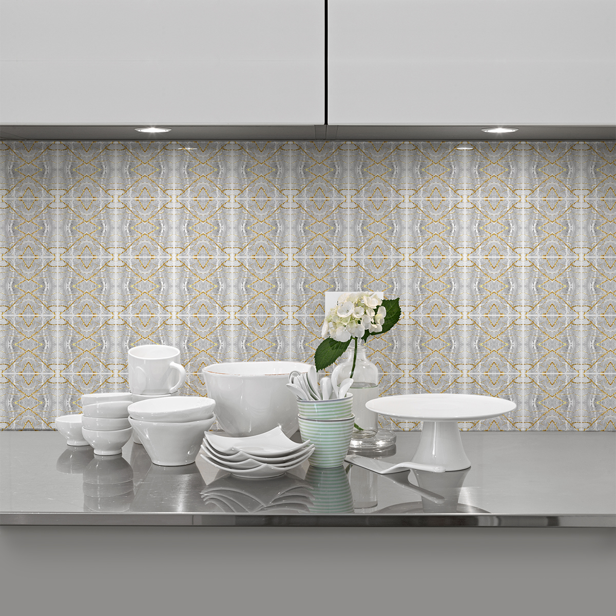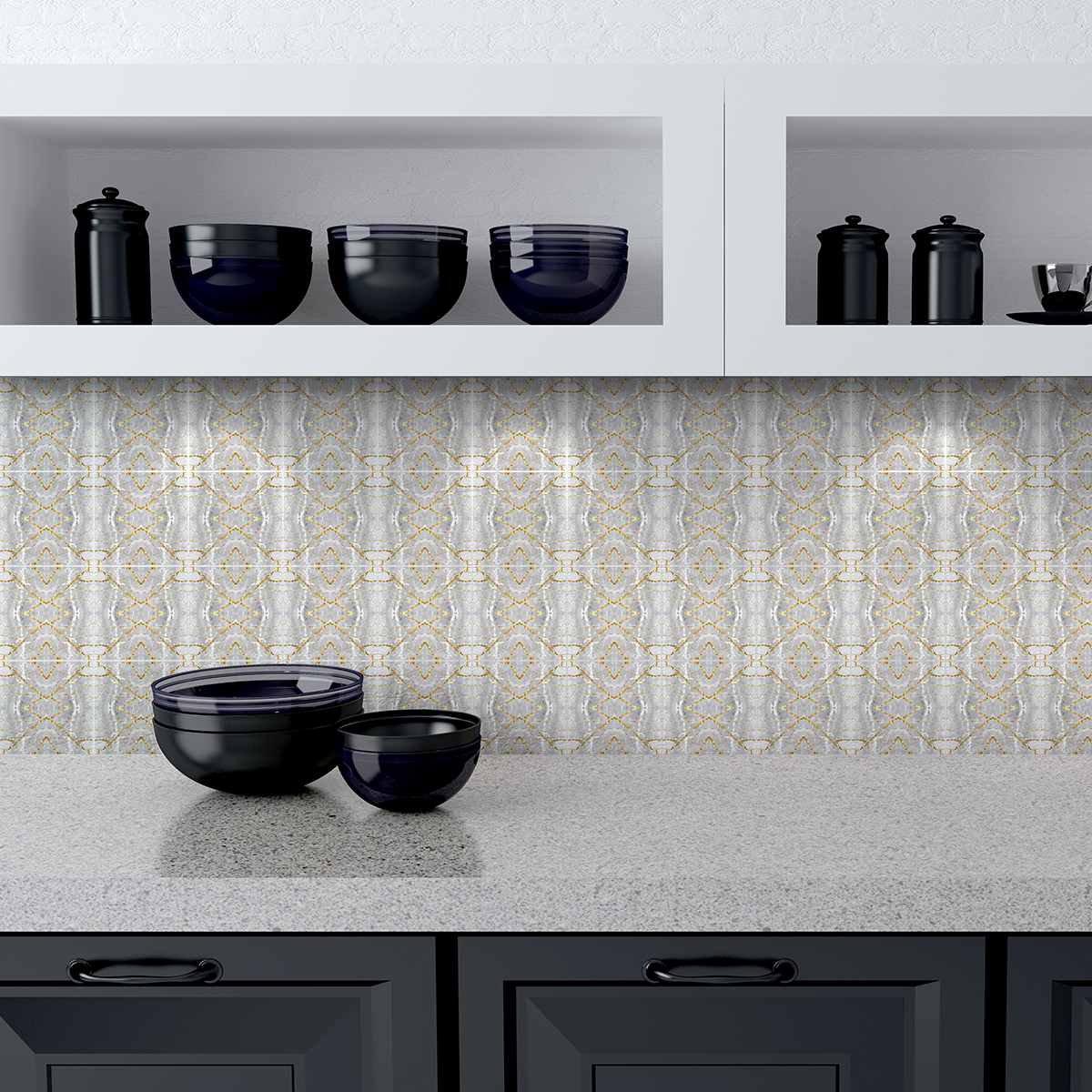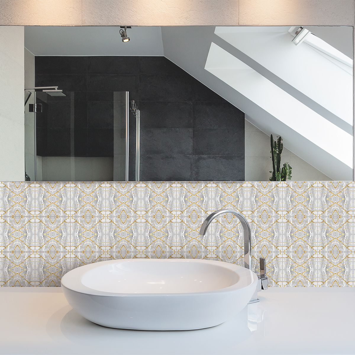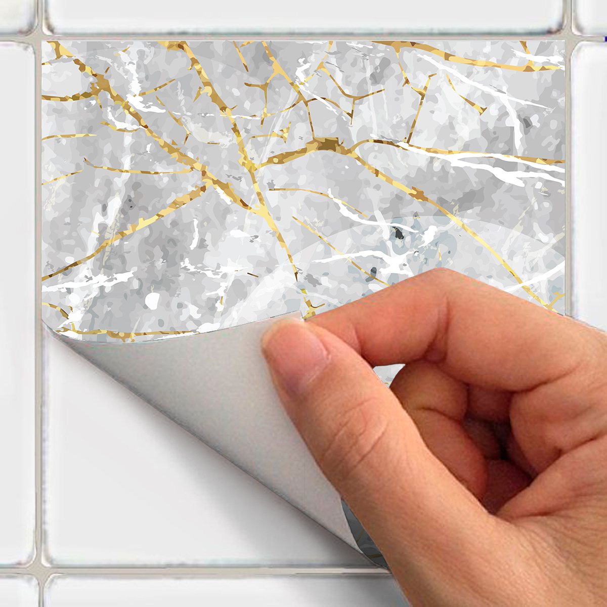 Sticker Mural Carrelage Cuisine Salle de Bain - 9 STICKERS CARRELAGES EFFET MARBRE GRIS ET DORÉ