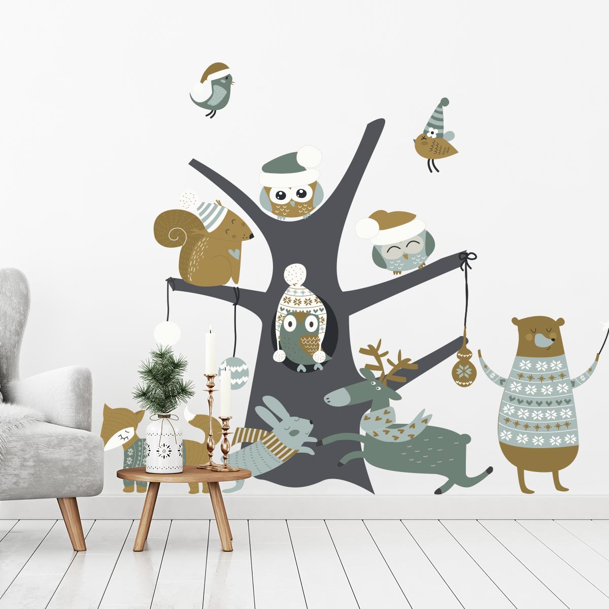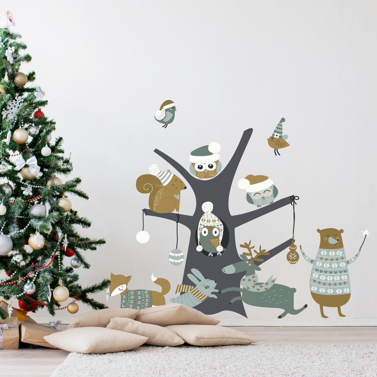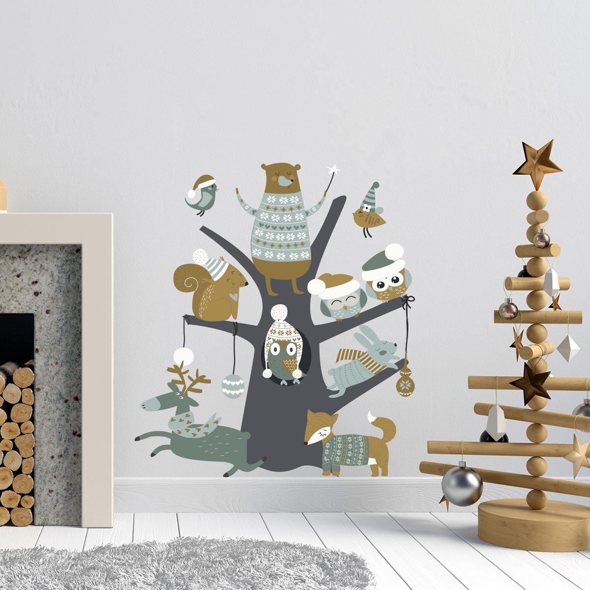 Sticker Noël l'arbre magique des animaux des bois - Autocollants stickers adhésifs noël - décoration fête