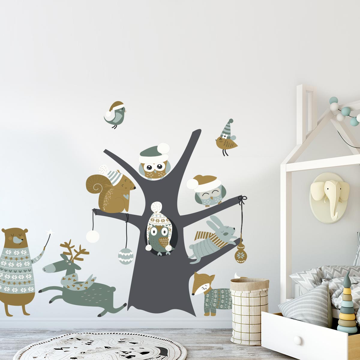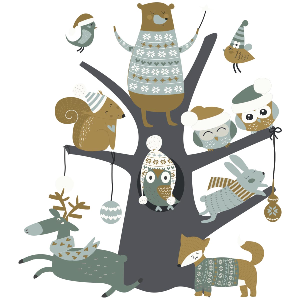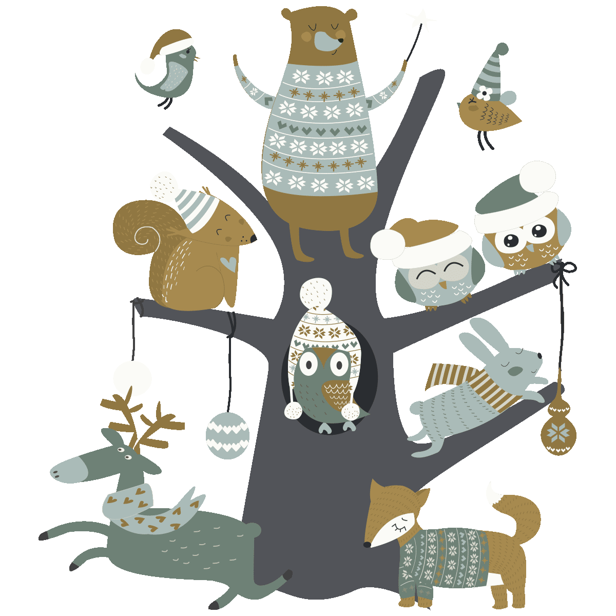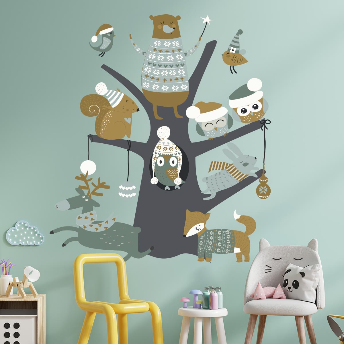 Sticker Noël l'arbre magique des animaux des bois - Autocollants stickers adhésifs noël - décoration fête