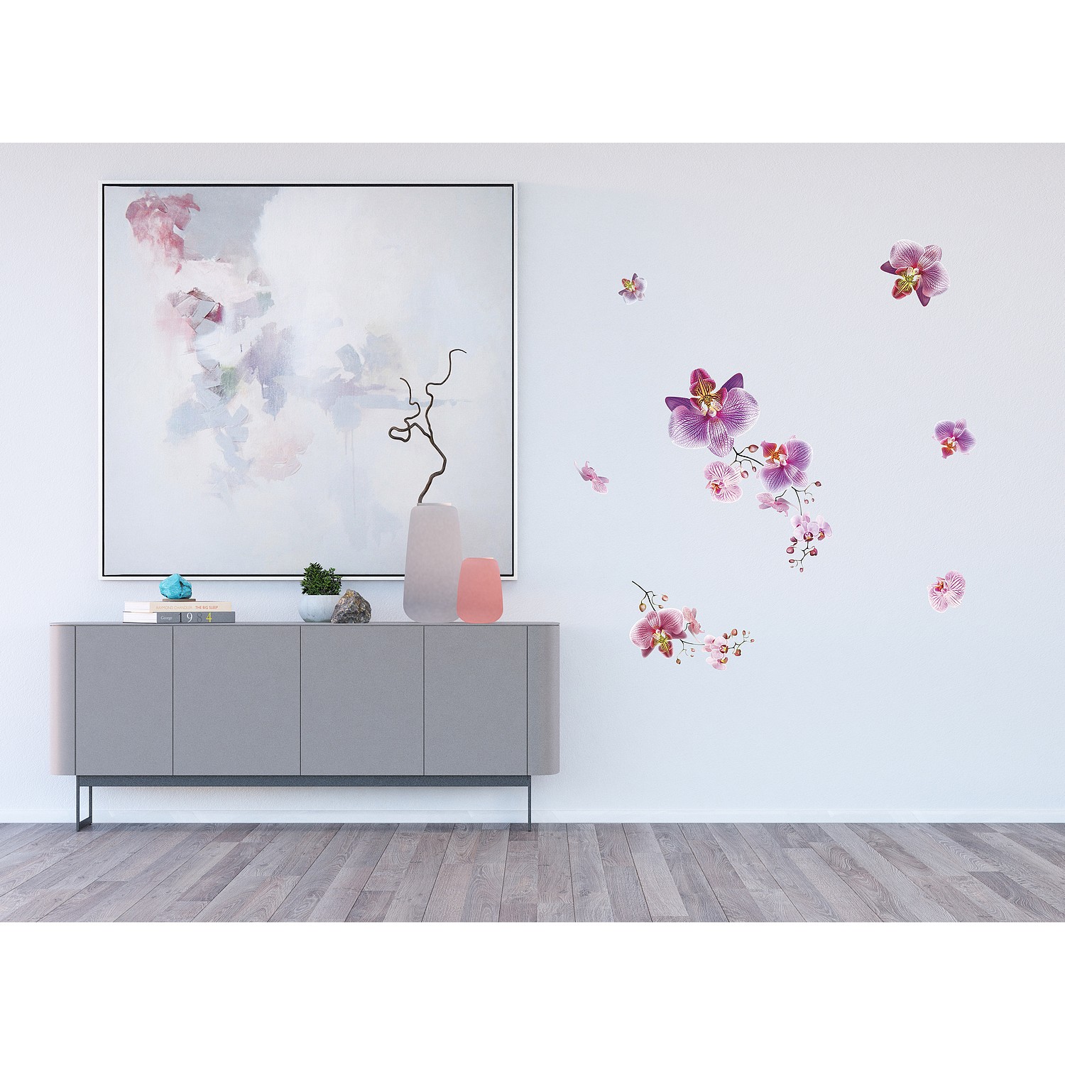 Sticker Orchidées roses et fushia - 1 planche 42,5 x 65 cm