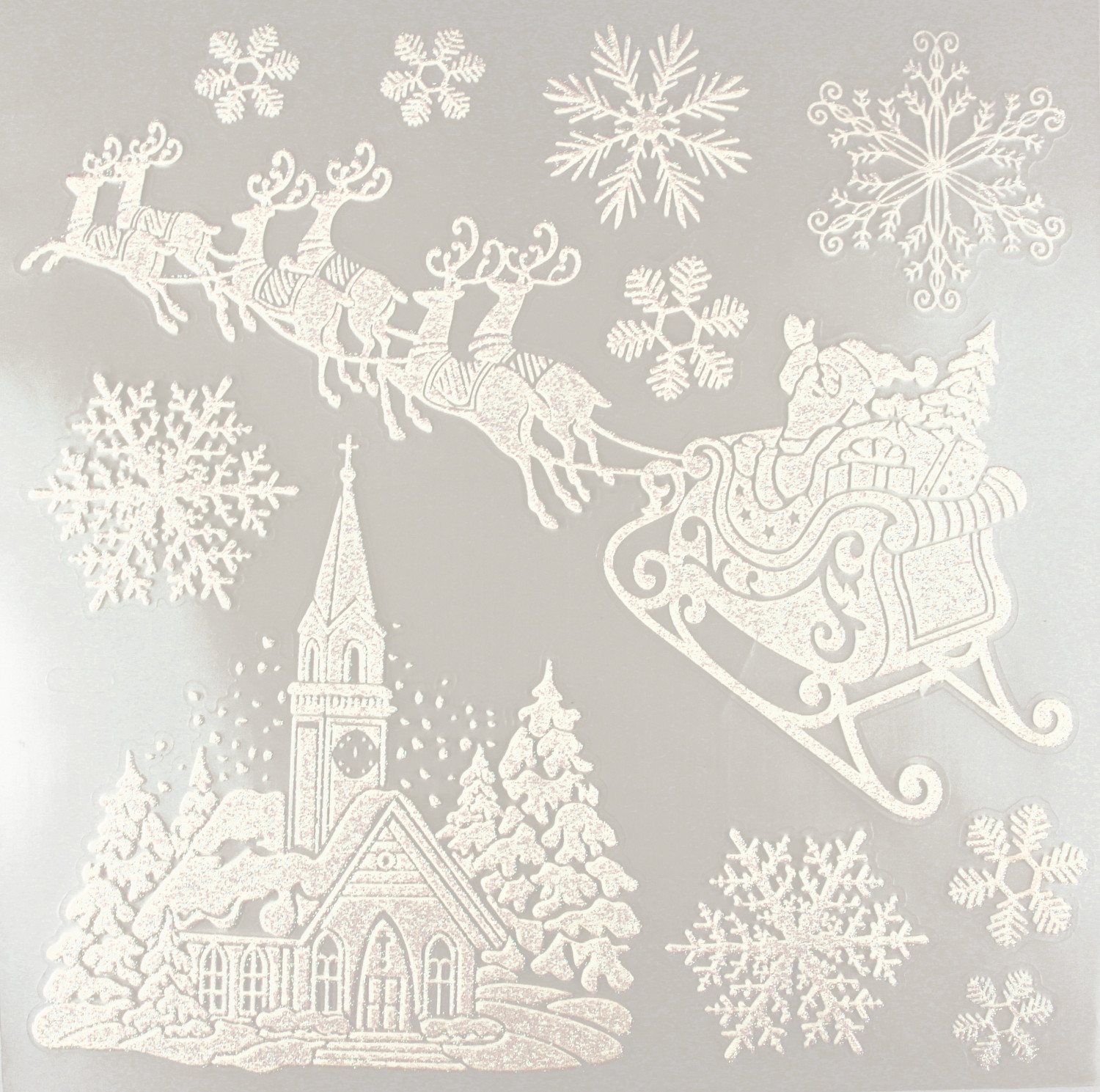 | Libellé | Sticker vitrostatique Blanc pailleté Traineau Noël |