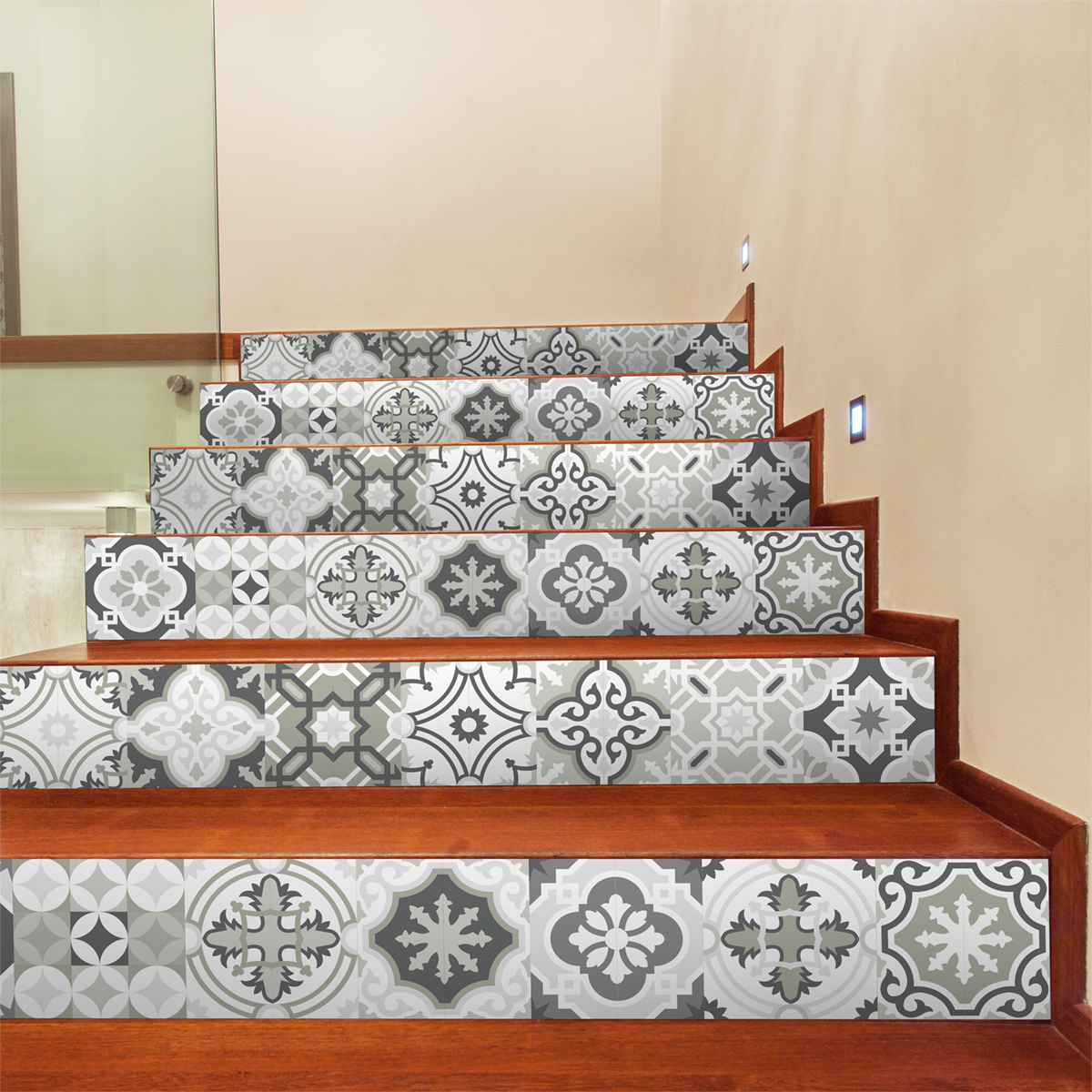Stickers adhésifs escalier carrelages | Sticker Autocollant contremarche Carreaux de ciment carrelages ad