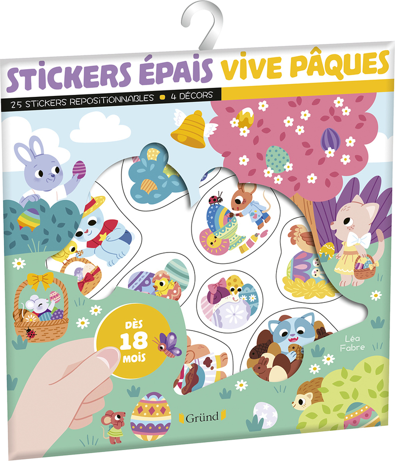 Cette pochette contient 25 stickers épais et repositionnables à coller sur 4 décors différents sur le thème de Pâques.