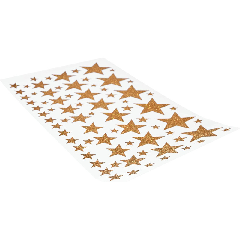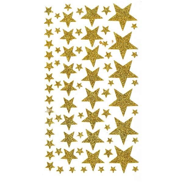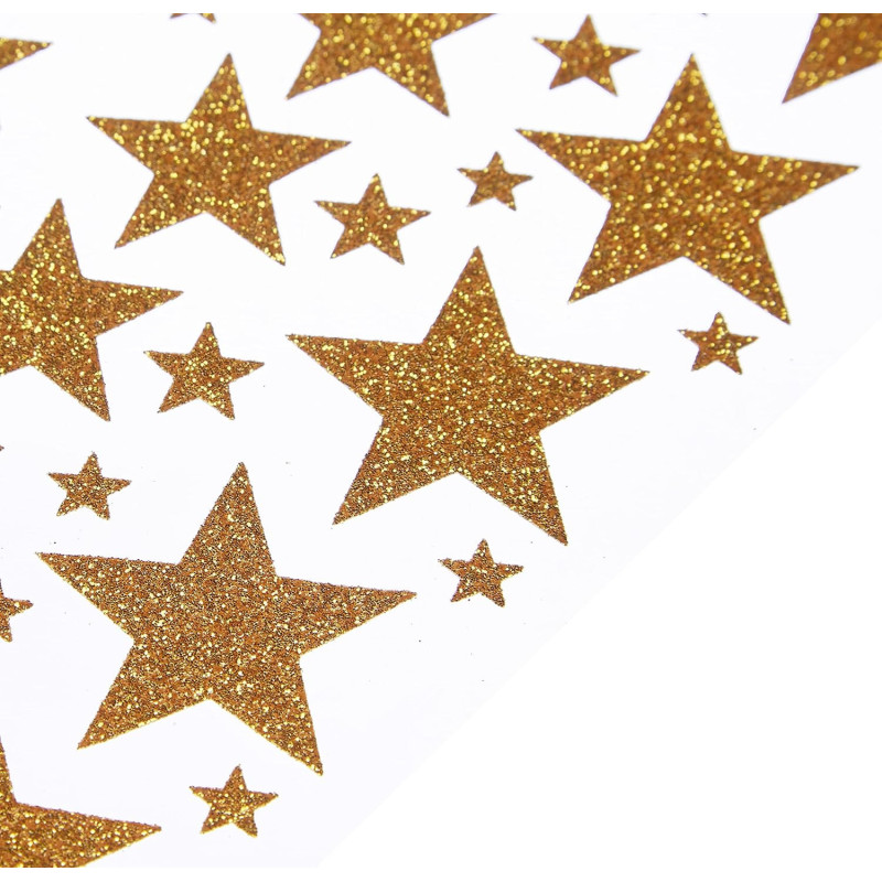 Faites briller le scrapbooking avec ces stickers étoiles à paillettes dorées ! Autocollants à paillettes - planches 14 x 25 cm. Dimensions des autocollants : entre 1 et 4 cm. Environ 75 pièces.