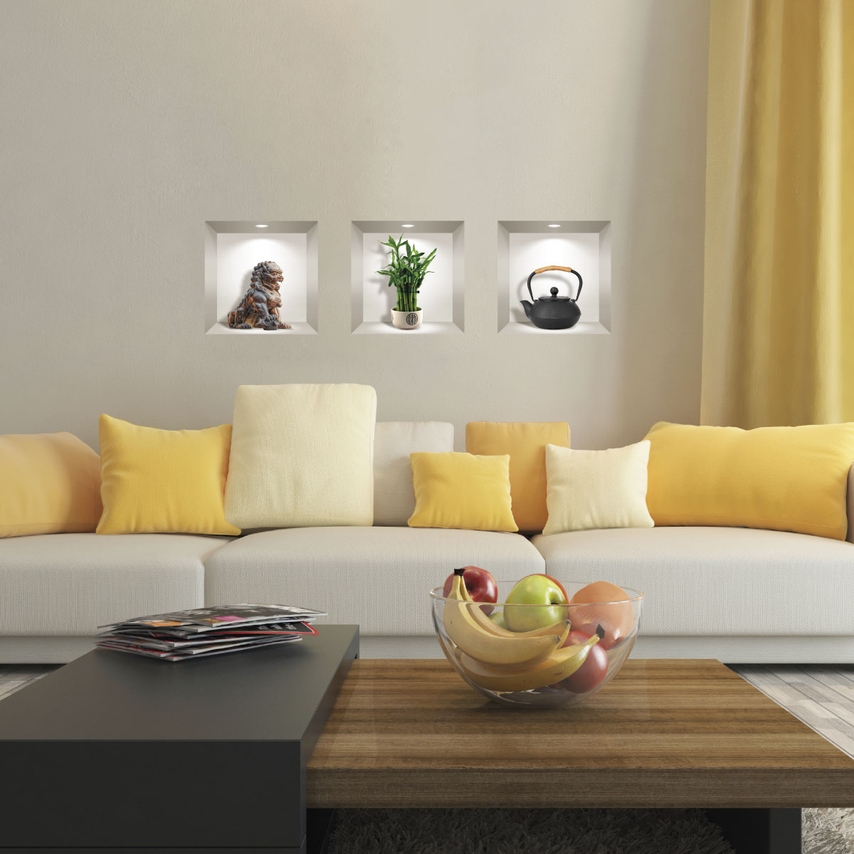 Des stickers 3D pour votre déco ! Avec ce magnifique sticker 3D représentant des Stickers 3D ambiance japonaise 40 x 120 cm, vous allez pouvoir décorer l'intérieur de votre chez vous de manière simple et authentique ! Plongez-vous dans une toute autre atmosphère sans sortir de chez vous ! Où coller cet autocollant déco ? Cet adhésif 3D déco sera parfait pour décorer l'intérieur toutes les pièces de vie de votre intérieur ! Épatez vos convives avec nos visuels originaux ! Dimension des stickers niches 3D : Pour le 30 x 90 cm, le sticker se compose de 3 stickers niches 3D qui mesurent 30 x 30 cm Pour le 40 x 90 cm, le sticker se compose de 3 stickers niches 3D qui mesurent 40 x 40 cm Impression numérique en haute définition sur du vinyle autocollant 3D de qualité supérieure. La grande épaisseur du sticker 3D permet une pose aisée. Décollez cet adhésif mural 3D de son support et appliquez-le de gauche à droite. Un repositionnement est possible durant les premiers mois. Le sticker 3D tient ensuite durablement sur votre support, sans l'abîmer lors du décollage. Les stickers muraux 3D, c'est l'originalité garantie ! IMPORTANT : Vous avez la possibilité de disposer chaque élément du sticker mural 3D de la façon dont vous souhaitez. Ce qui donne des multiples idées pour décorer votre intérieur.