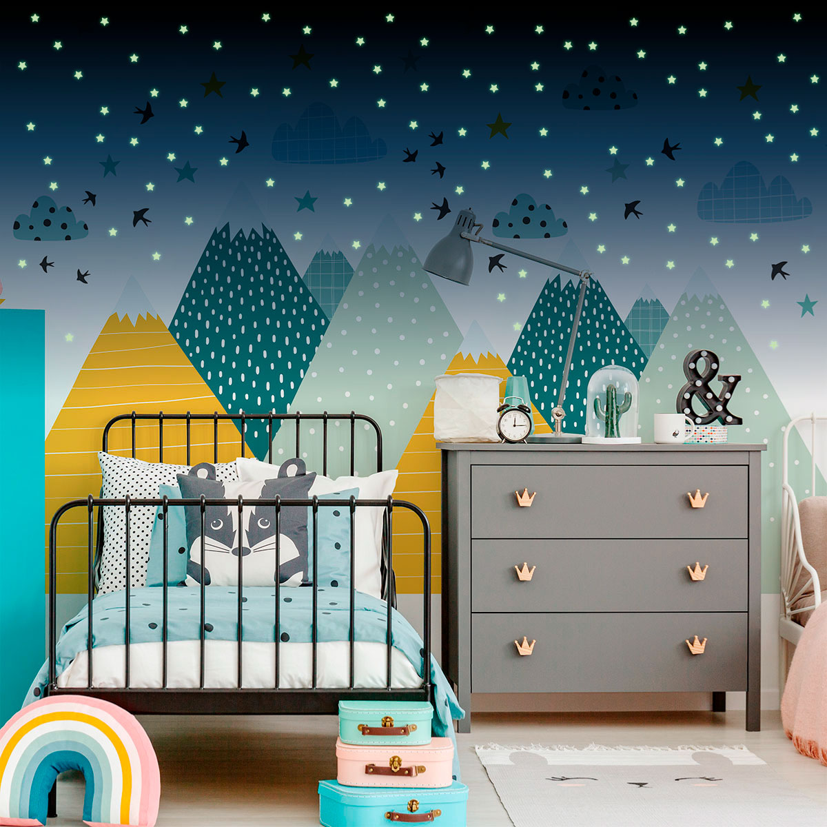 Stickers muraux montagnes scandinaves - Décoration enfant - MONTAGNES ZISKA + 100 ÉTOILES PHOSPHORESCENTE