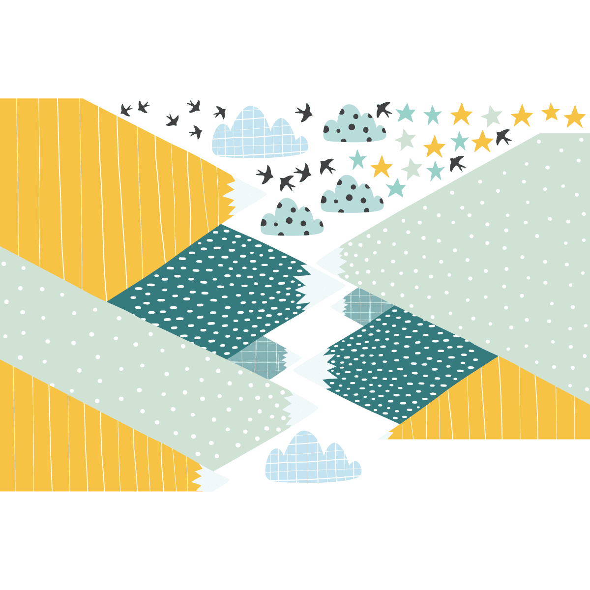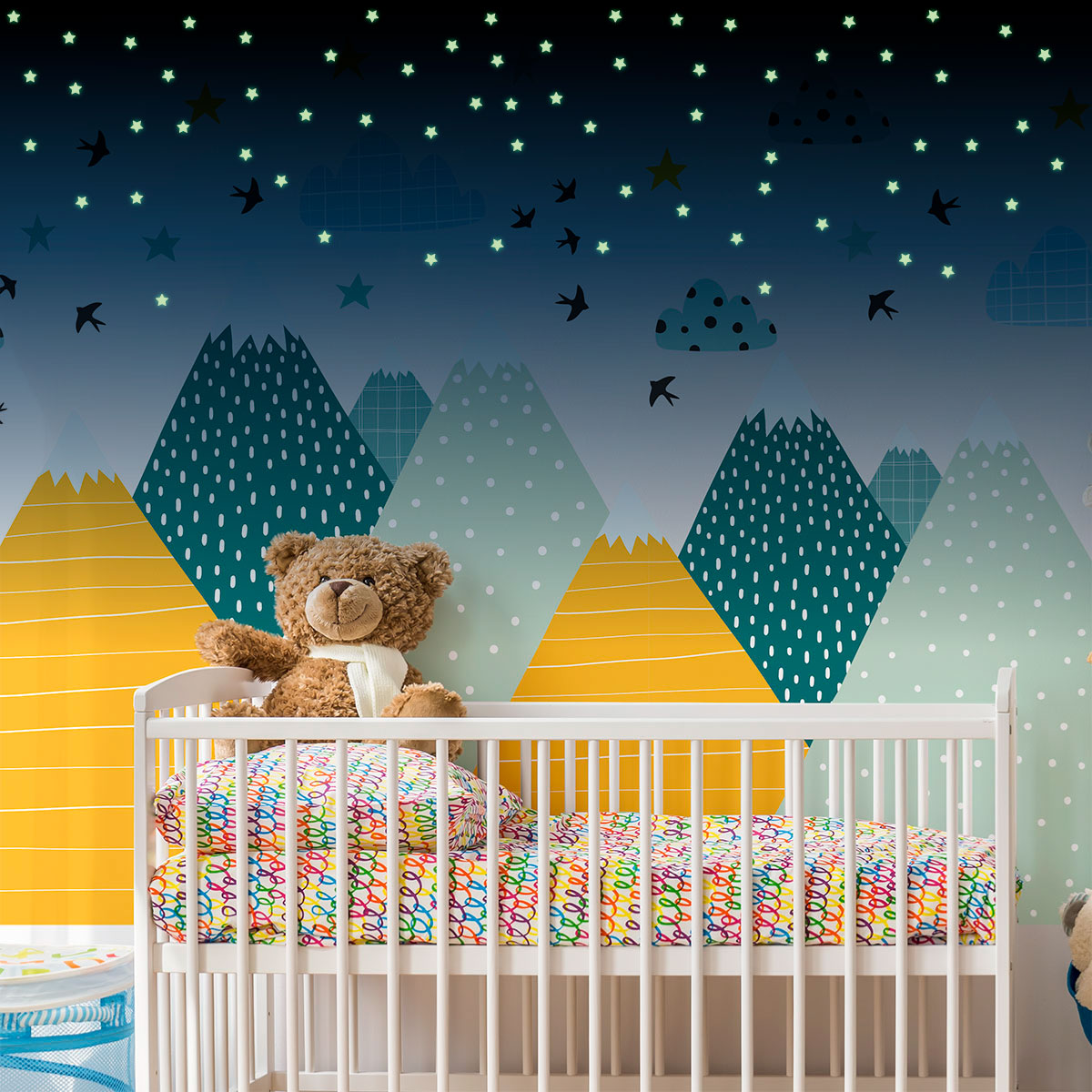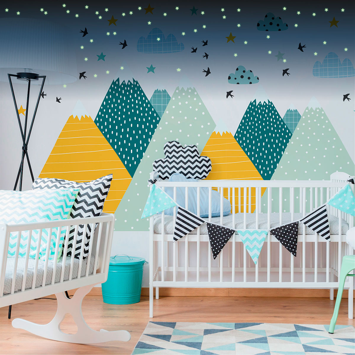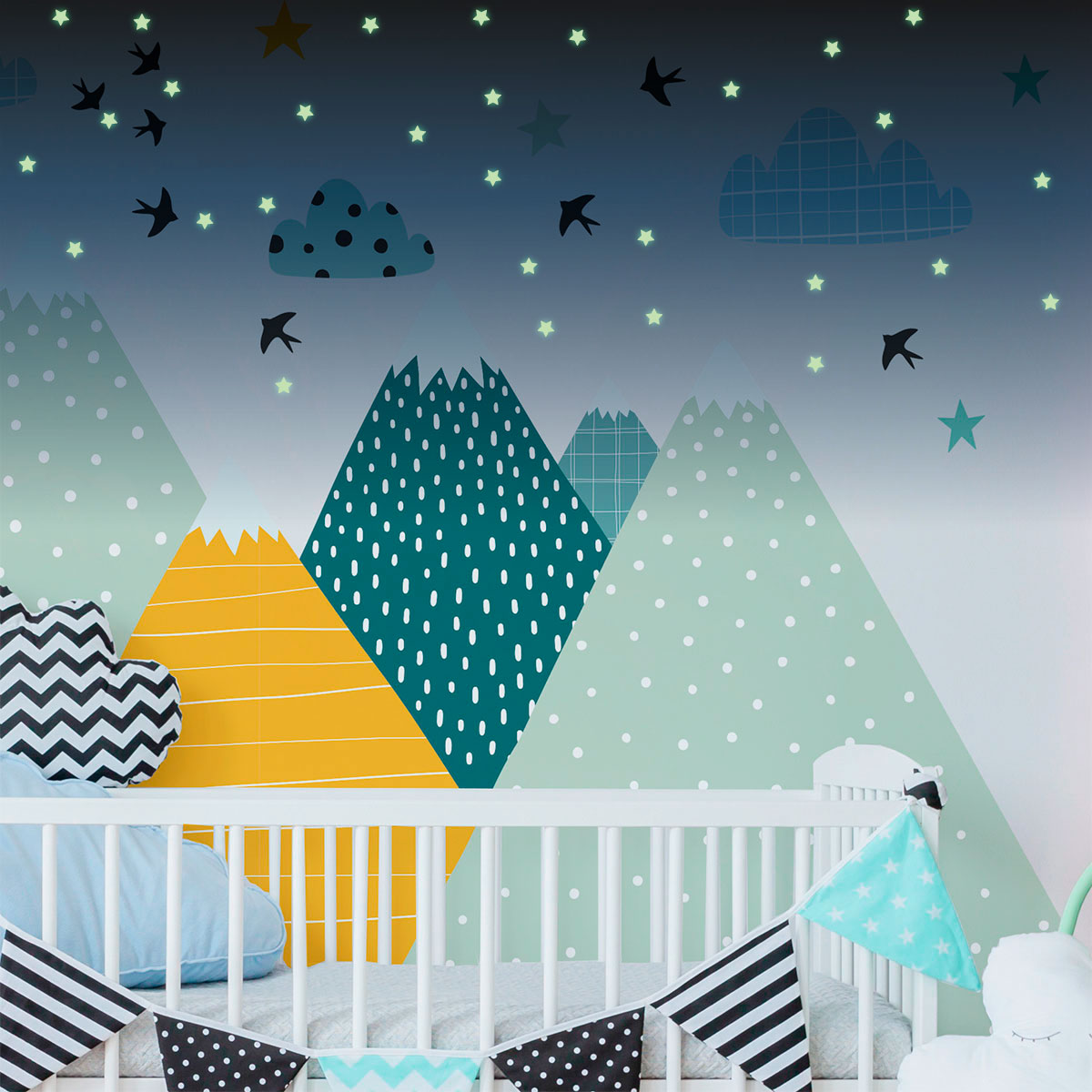 Stickers muraux montagnes scandinaves - Décoration enfant - MONTAGNES ZISKA + 100 ÉTOILES PHOSPHORESCENTE